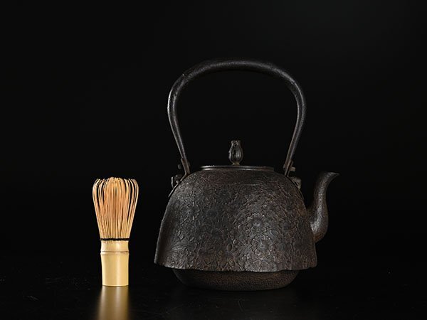 | 南部盛岡 釜師 薫山 造 鬼面鐶付花尽紋尾垂鉄瓶 / 鉄瓶 茶道具 | ||||||||||||||||||||