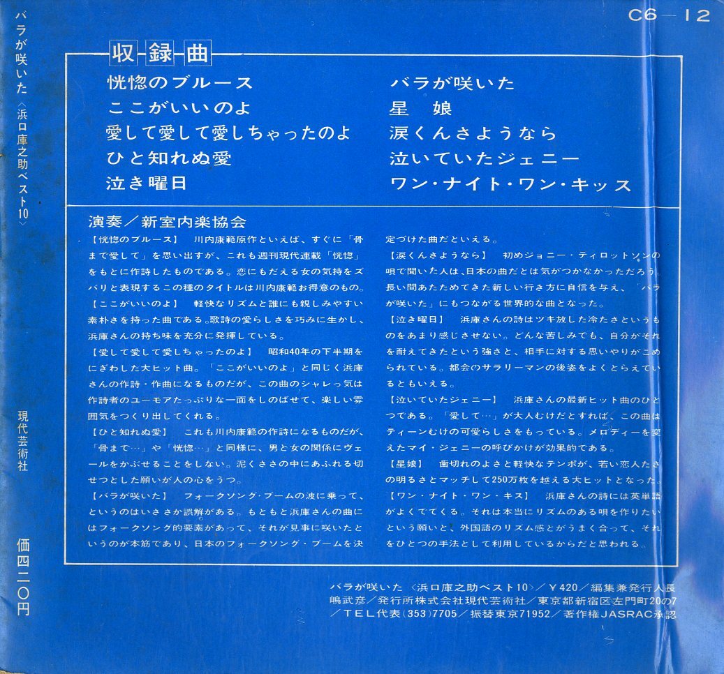 C00129493/▲▲ソノシート2枚組ブック/我妻マリ(表紙)新室内楽協会「バラが咲いた/浜口康之介ベスト10」 [浏览原始页面]