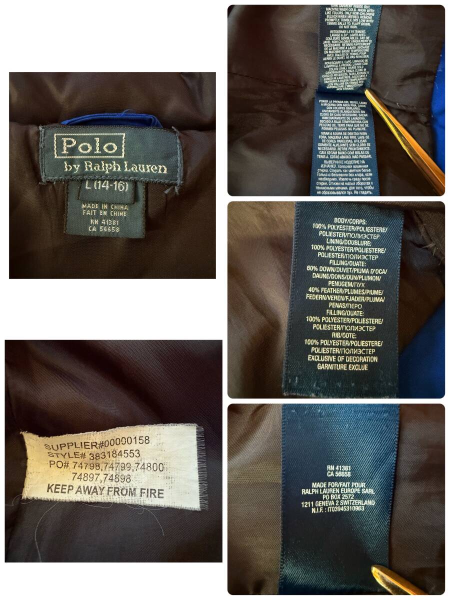 | ★ 商品名 ★ y2k archive ラルフローレン ビッグポニー ダウンジャケット ブルー×ホワイト 14-16 160㎝ メンズS レディースM相当 短丈 美品 ダウン60 ファザー40 ★ |