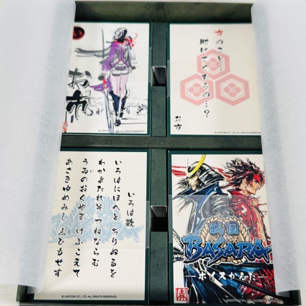 ご覧いただきましてありがとうございます。 商品説明 商品名:戦国BASARA ボイスかるた メーカー:CAPCOM(カプコン) セット内容: 取り札/読み札 合計48枚 オリジナルドラマCD(ジャケット&ケース付き) 取扱説明書・収納パッケージ 状態: 未使用・保管品 特徴: 人気ゲーム『戦国BASARA』のキャラクターボイスを収録 かるた遊びをしながら武将の名セリフを楽しめるファン必携アイテム ファンイベント配布・非売品レアアイテム おすすめポイント: コレクション向けの限定品 友人やご家族とのかるた対戦で盛り上がること間違いなし ドラマCDで聴ける豪華声優陣のキャラボイス