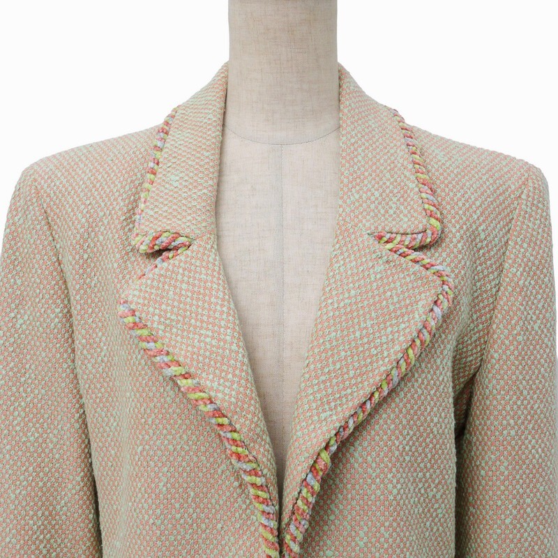 | GS5840〇イタリア製*ヴァレンティノ VALENTINO*コットンウール*ソフトツイード*ジャケット*サイズ12*グリーン×ピンク系 | |||
