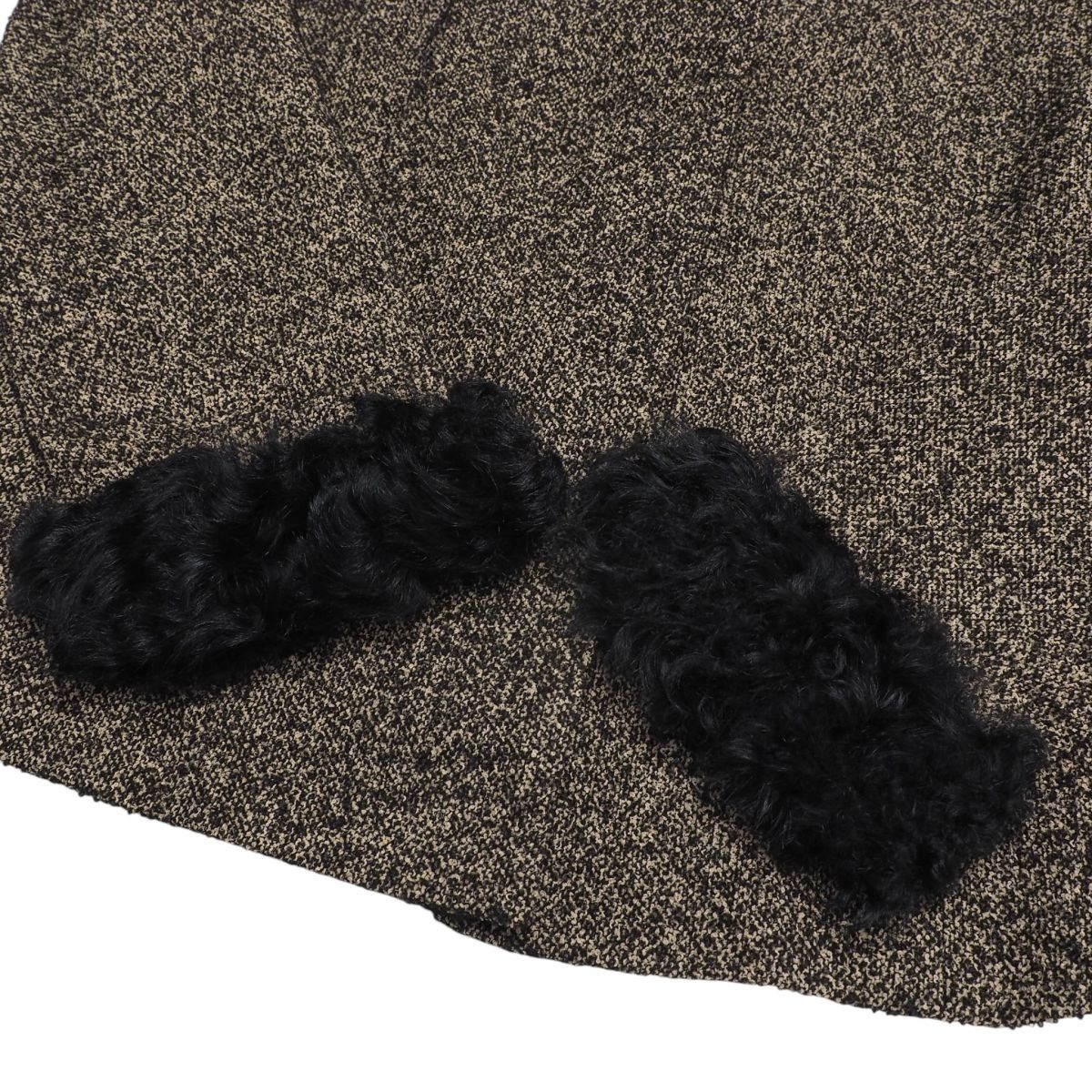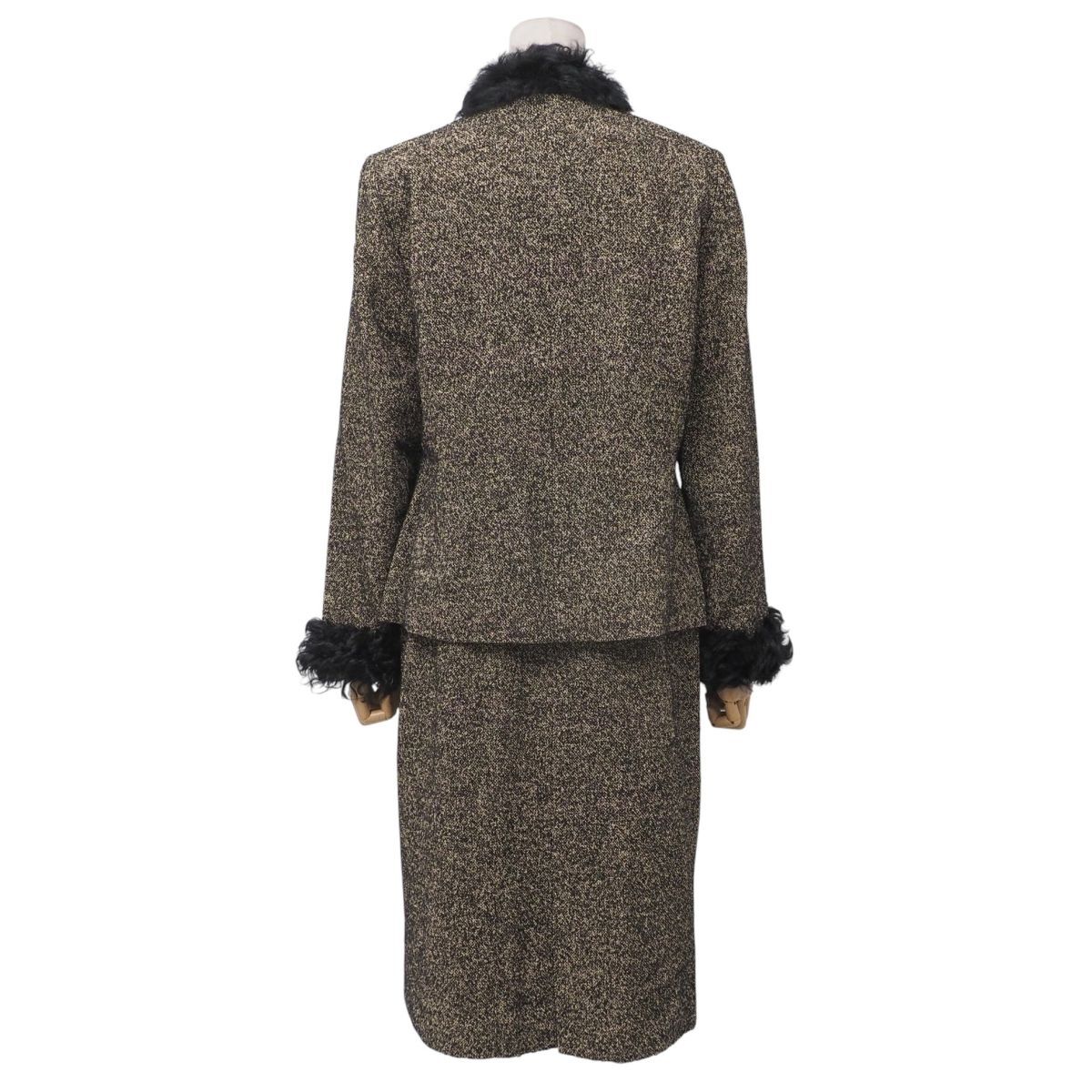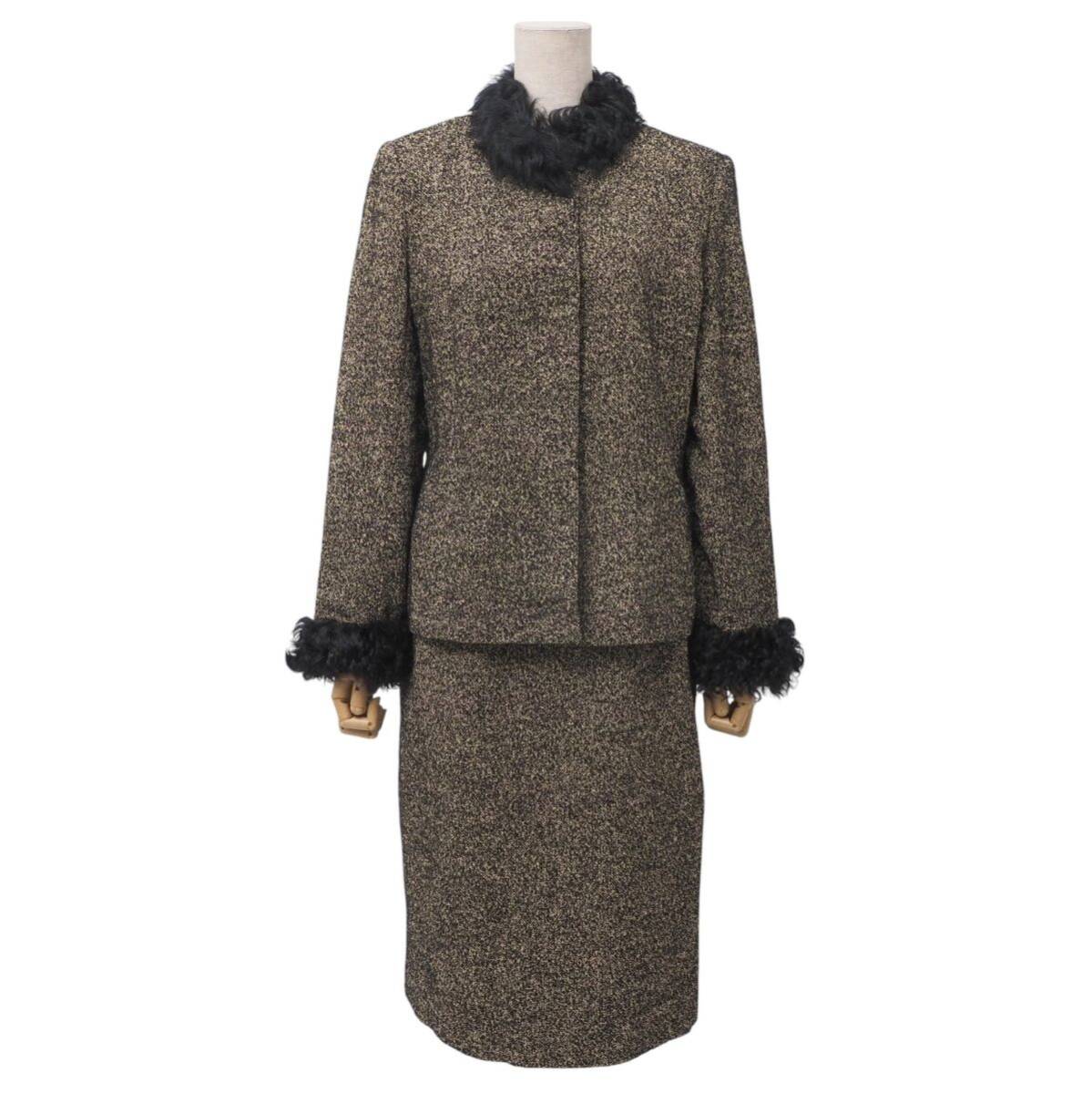 | MI3485☆ロベルタディカメリーノ Roberta di Camerino セットアップ スーツ ツイード ラムファー襟 ジャケット+スカート 黒×ベージュ 40 | |||