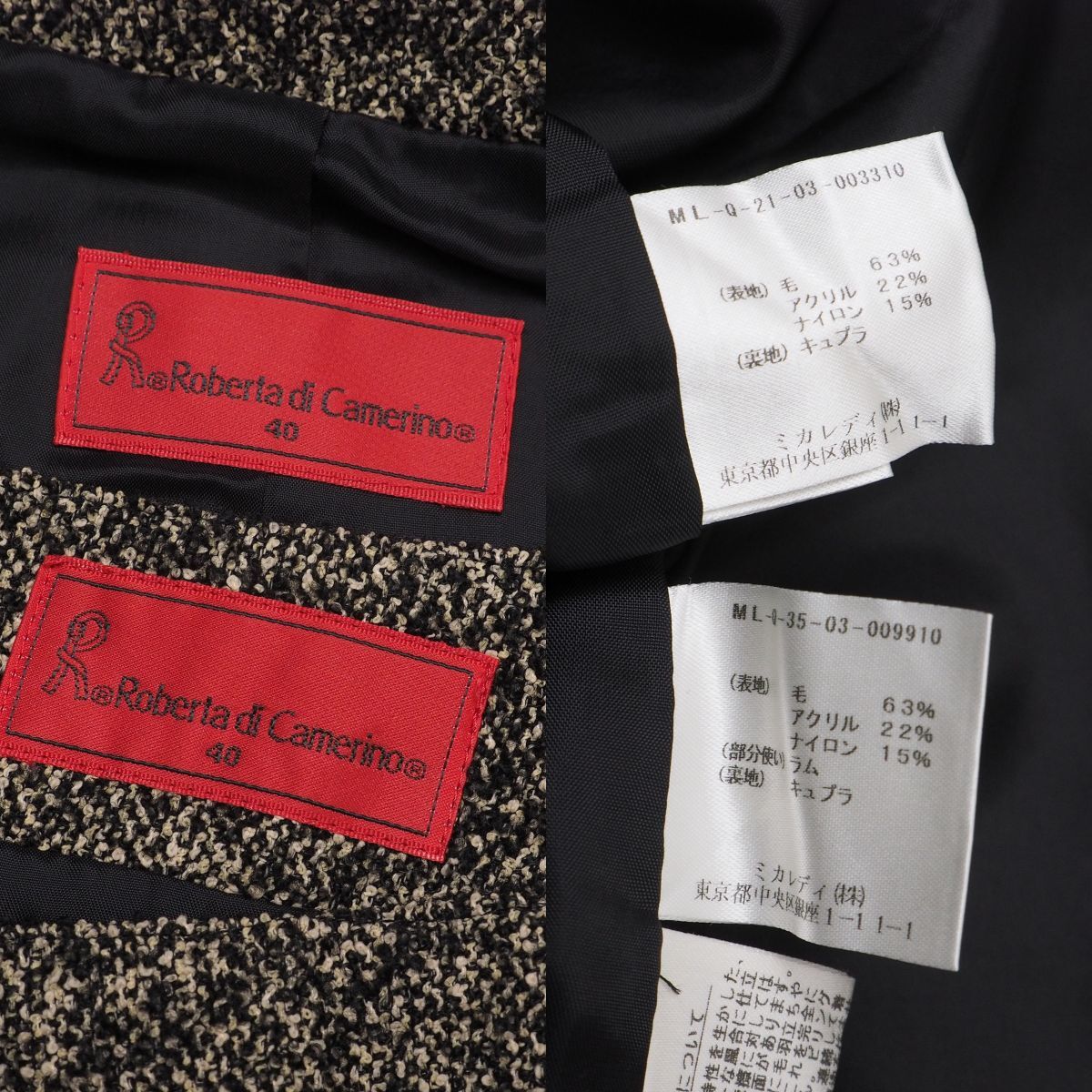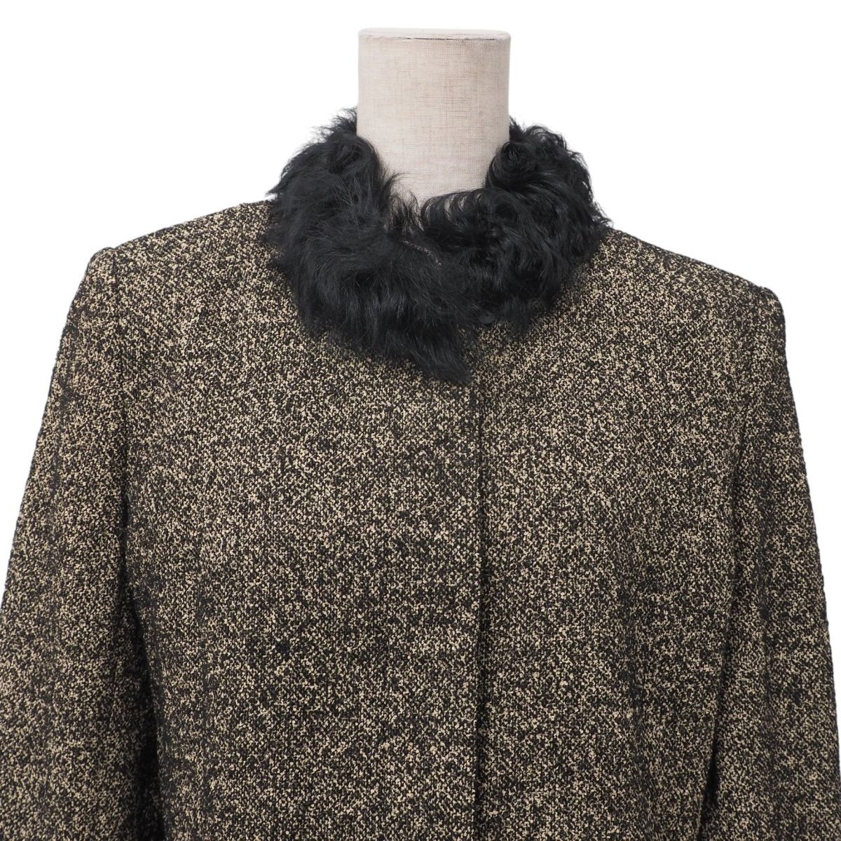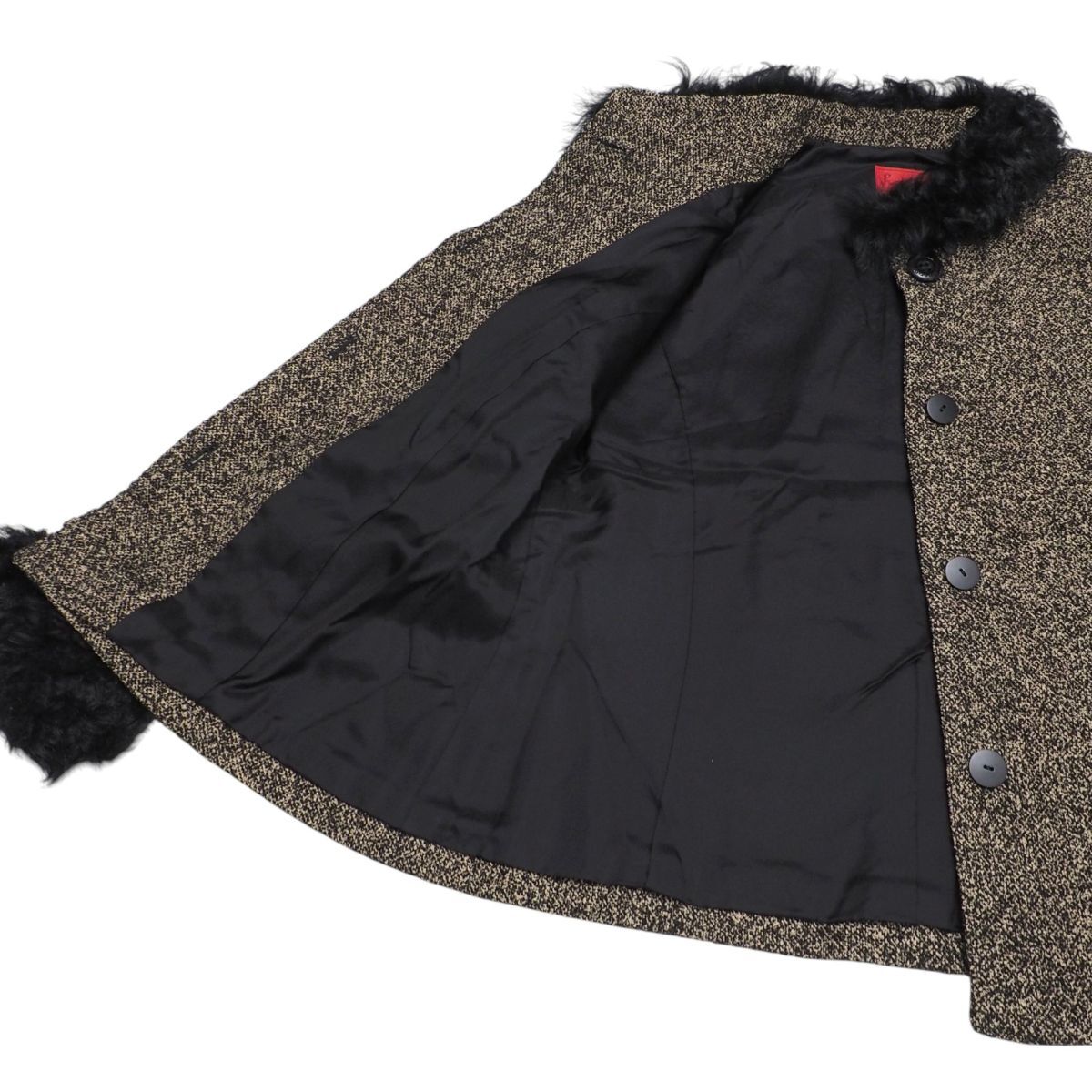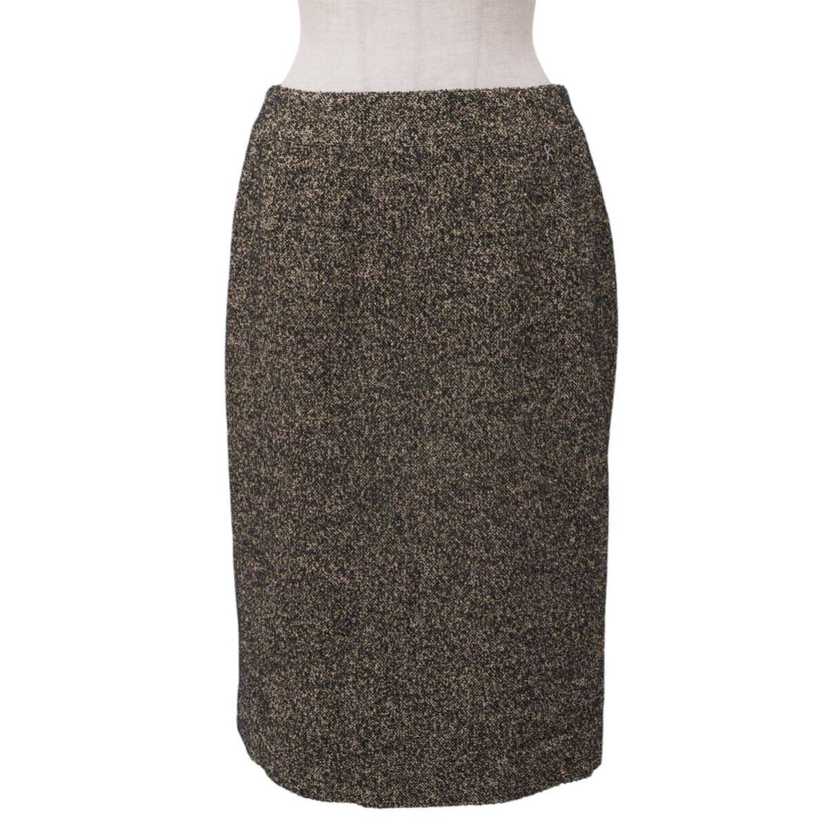 | MI3485☆ロベルタディカメリーノ Roberta di Camerino セットアップ スーツ ツイード ラムファー襟 ジャケット+スカート 黒×ベージュ 40 | |||