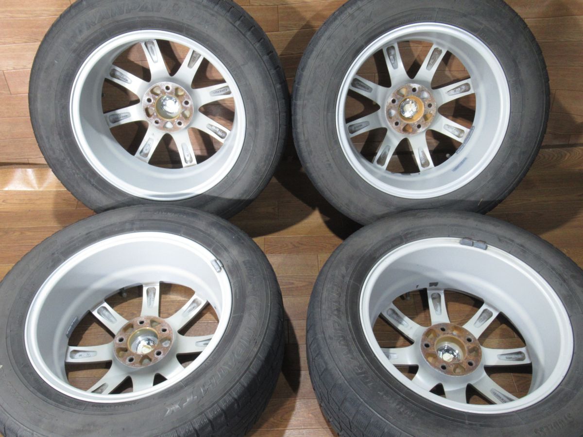 状態 中古品となります。(前装着車情報・使用期間・距離等は不明となります)。 4本とも、リムやスポーク部に小傷や使用傷、部分的にダスト汚れや洗車シミなどが有りますが、見た目の歪みは有りませんでした(機材がないためバランス・フレは未確認となります)。 1枚目画像に写っておりますものでお渡しいたします全てとなりますので、画像をよくご確認くださいませ。 純正ナットは付属致しませんのでご了承下さい。 その他付属品等はございません。 |