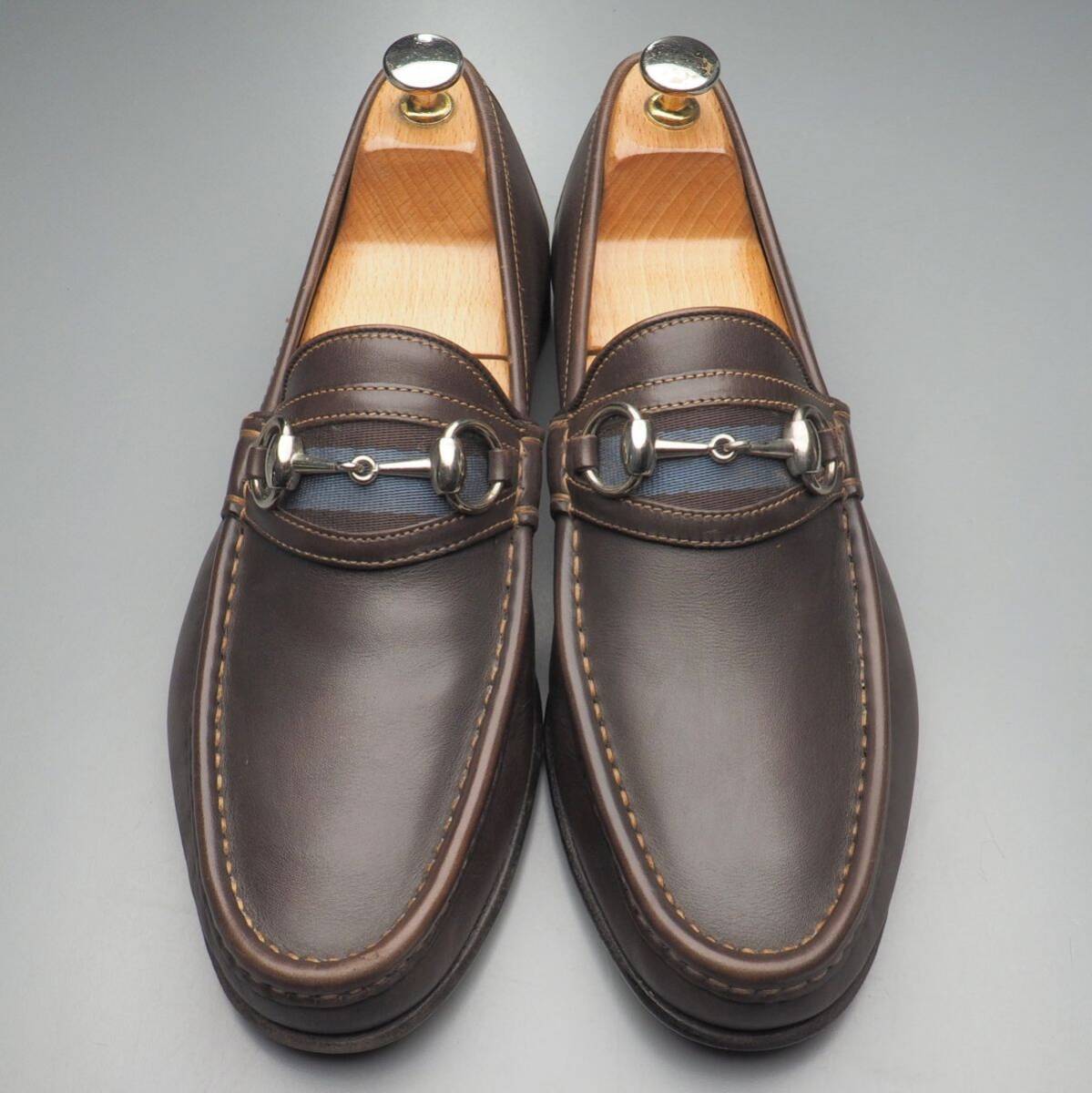 | 商品詳細 | イタリアを代表する世界的なラグジュアリーブランドのひとつ「グッチ/GUCCI」の一足です。 程よいハリ感を持ちつつ柔軟性のある茶のスムースレザーをアッパーに用い、定番のビット装飾と共にシェリーラインを配したアイコニックなデザイン。 ソールの返りも柔らかで歩きやすく、快適な履き心地を備えます。 製法:マッケイ アウトソール:レザー トップリフト:レザー×ラバー ライニング:レザー 生産:イタリア製 ※撮影用のシューキーパーは付属致しません。 ※本物の商品ですのでご安心の上オークションをお楽しみ下さい。 ※タイトル頭の英数字は弊社の管理番号です。 ※ほかにも多数の商品を出品しています。 ※同梱に関しましては「まとめて取引」でのみ対応可能です、その他の方法での同梱対応は出来かねます。 (※商品の特性上、同梱対応出来ない商品もございますので予めご了承下さい。) |