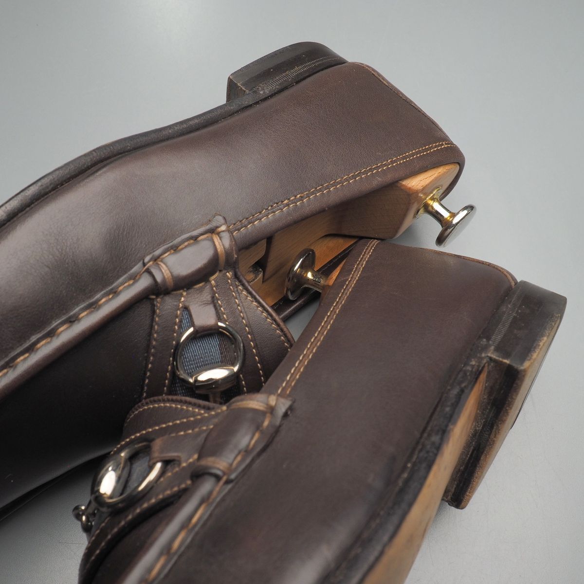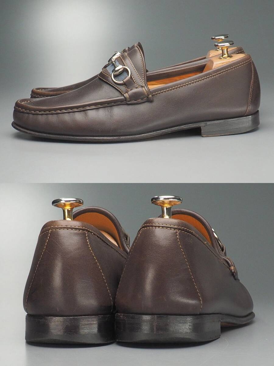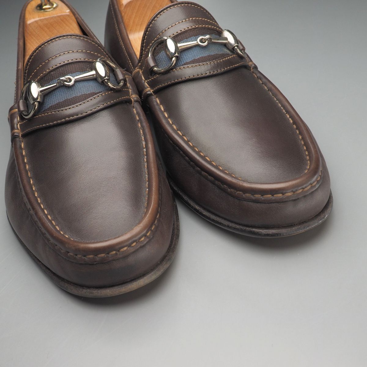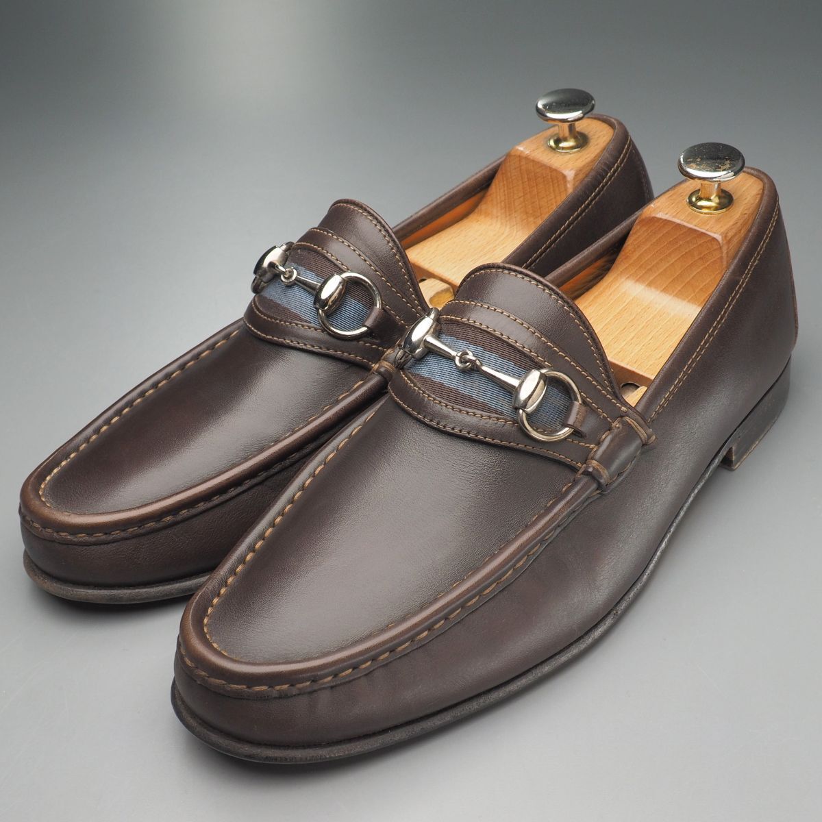 | GS5676//イタリア製*グッチ/GUCCI*メンズ40.5E/シェリーライン/ウェブリボン/ホースビットローファー/レザースリッポン/革靴/茶/ブラウン | |||