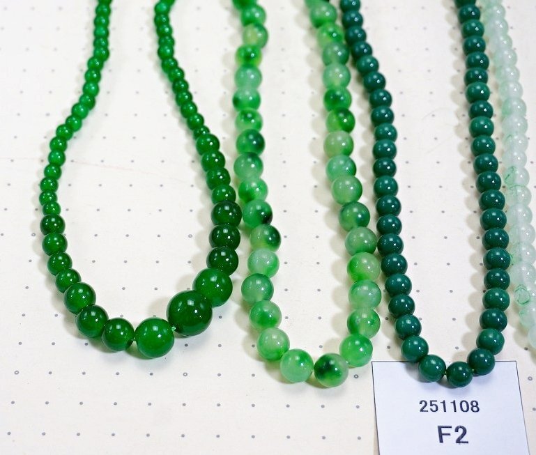 ヒスイ メノウ等 緑石系 天然石ネックレス ペンダント まとめて5点セット ヒスイ メノウ等の緑石系 天然石のネックレス ペンダント 5点セットです。 とても丁寧に研磨されており、艶、色味ともに非常に美しいものです。 写真がお譲りする商品の全てになります。 材質: ヒスイ メノウ等の緑石系の天然石 サイズ: ネックレスが置かれている下地の模様の点の間隔が1cmですので、参考にしてください。 個数: 5点 当店の他の出品商品との同梱料は下記のとおり落札1点につき200円です。 |