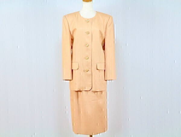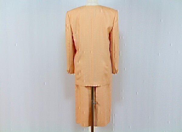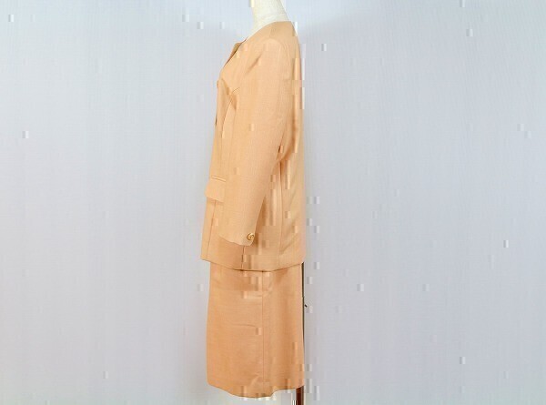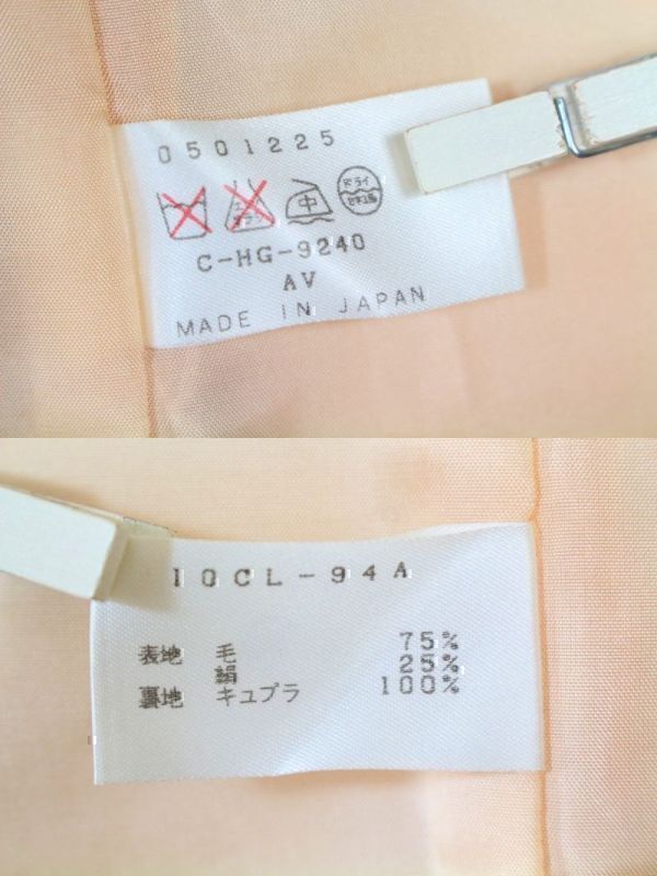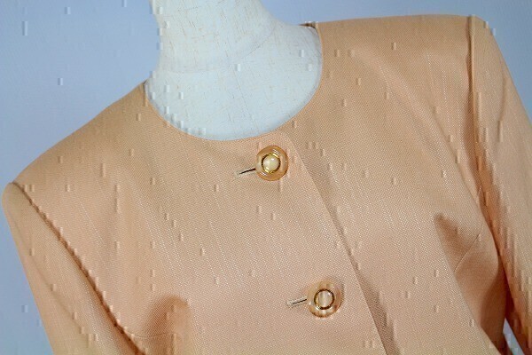 ※肩パットが入っています。 【表記サイズ】 9 【カラー】 濃い肌色ぽい ※撮影時や画面の明るさにより色が変わる場合がありますのでご了承ください。 【実寸サイズ】 (ジャケット)肩幅 41㎝・着丈 67㎝・身幅 96㎝・袖丈 55㎝ (スカート)ウエスト 66㎝・ヒップ 92㎝・総丈 69㎝ ※平置き素人採寸の為、多少の誤差はご理解下さい。 【商品状態】 綺麗めな状態です。 ※一人で状態確認をしています。見落とす場合もありますのでご了承下さい。 |
