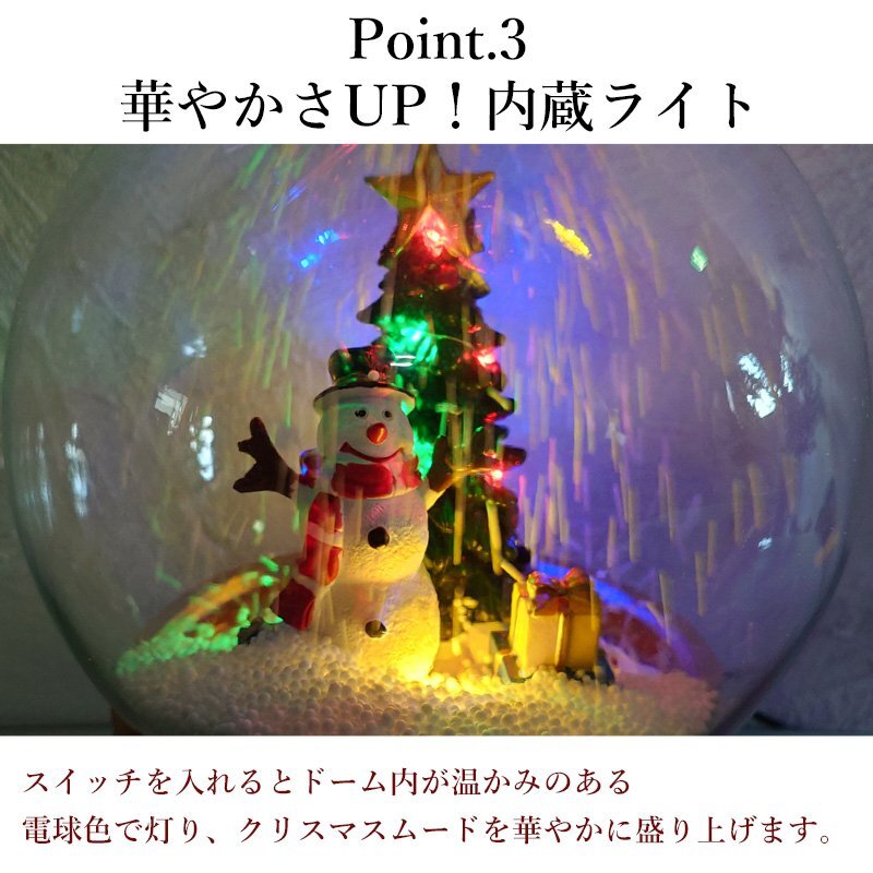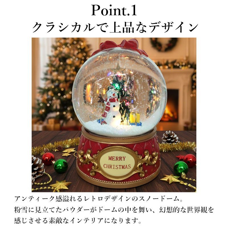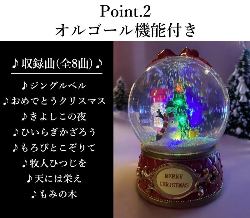 ![]() 可愛らしいスノーマンとクリスマスツリーが雪に包まれ、優しい光で幻想的に輝きます。 ドーム内では粉雪がふんわりと舞い、カラフルに光るツリーが幻想的に輝きます。 台座には「MERRY CHRISTMAS」のエンブレムがあしらわれ、赤とゴールドの装飾が上品で華やか。 スイッチを入れるとLEDライトが優しく灯り、まるでサンタの魔法がかかったような温もりを感じられます。 玄関やリビング、ツリーのそばに飾るだけで、お部屋が一気にクリスマスムードに包まれます。 大切な方への贈り物にもぴったりな、心ときめくインテリアライトです。 給電方法は2つ、付属のUSBコードで使用する他、 単三電池3本でコードレスとしての使用も可能! 精巧に作られている為、ライトを点灯させずに 単体でオブジェとして使用しても存在感抜群です! ギフトなどにもおすすめです! ●動作パターン● ・未点灯 ・LED点灯(音楽なし)&スノーフレーク機能 ・LED点灯(音楽あり)&スノーフレーク機能 ※乾電池、USB出力用のアダプターは付属しておりません。 点灯時の様子は動画でご覧くださいませ。 動画はこちら ↓↓↓↓↓↓↓↓↓↓↓↓↓ こちらをクリック! 【商品詳細】 サイズ(約): 高さ19cm×幅29cm×奥行き10cm コード長さ(約):98cm 重量(約):1.8kg 素材:プラスチック 【給電方法】 単三電池×3/USBコード |