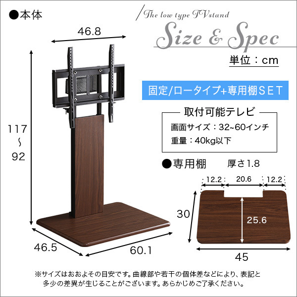 今回の出品でお求めいただける商品は 壁寄せテレビスタンド ロー固定タイプ+専用棚 です。宜しくお願いします。 |
