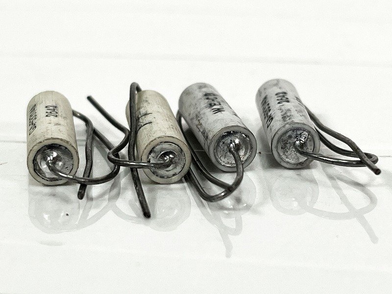 Western Electric GA-53314A 26.4kΩ 4個です。 ガラススケルトンに金属抵抗を蒸着させた高度な技術。 WE社を代表する技術です。 誤差1%、容量1/2W。 キズや汚れがございます。 ・サイズ:7.2φ×D26.6(mm) |