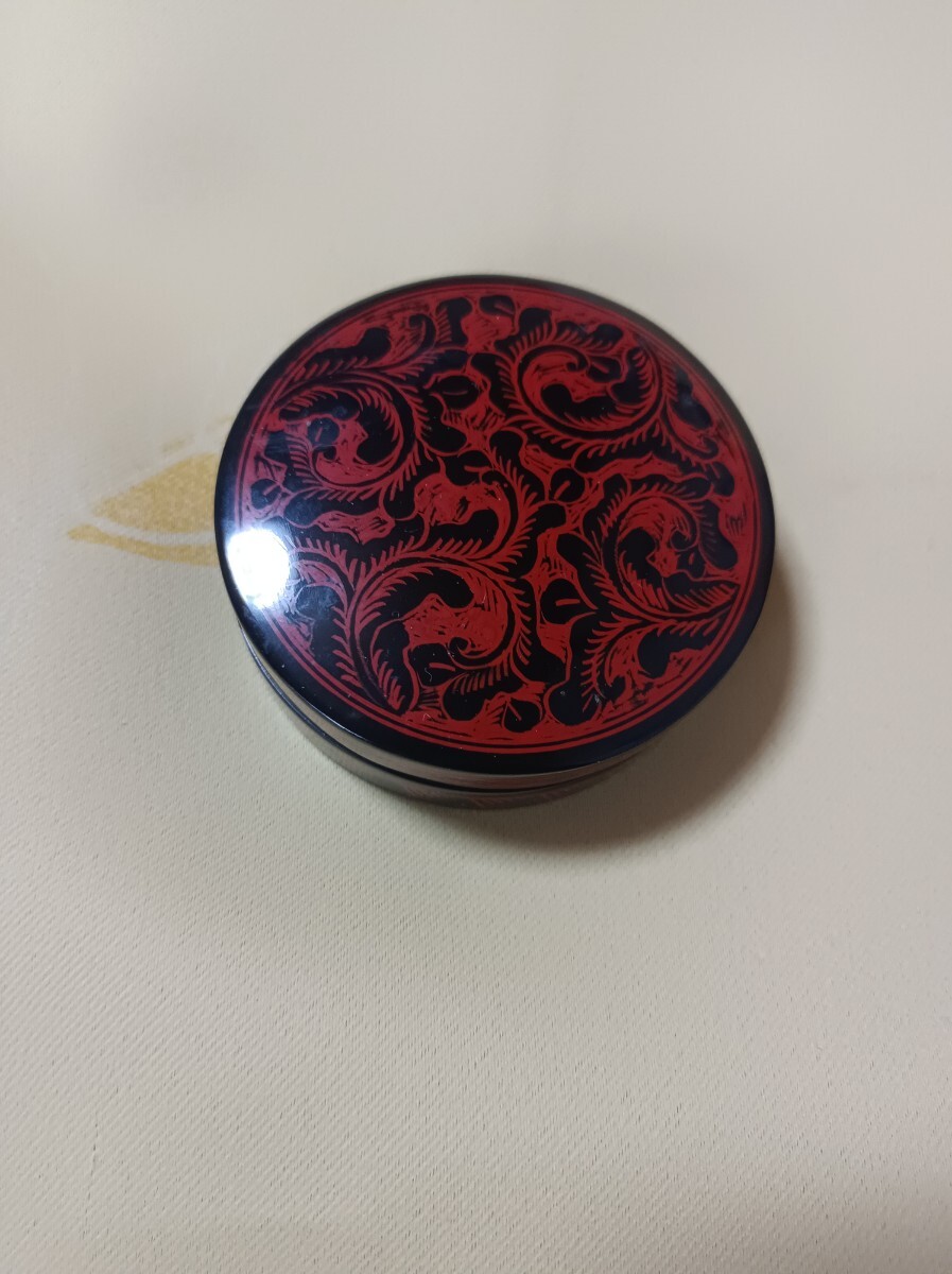 香川 三木町 漆塗り きんま塗り 黒漆の地に朱色の漆 唐草模様 経年からのに汚れ、キズ 共箱にありますが 香合は 綺麗な状態です 箱に朱色の捺印ありです。| 出价者 | 信用 | 价格 | 时间 |