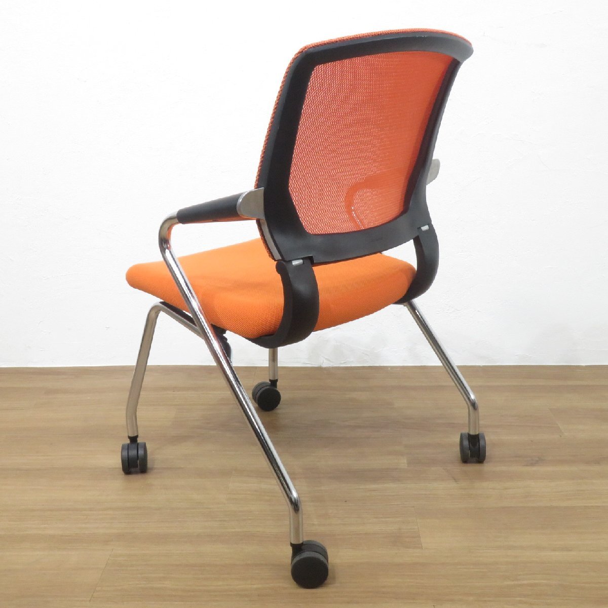 座面を跳ね上げることで省スペースに重ねて収納が可能なネスティング構造が、会議室や研修施設でのレイアウト変更や片付けをスムーズにします。 背面メッシュ+適度なクッション設計の座面が、長時間の打ち合わせでも快適な着座姿勢をサポートします。 キャスター付きモデルもあり、そのまま移動して会議開始できる機動力を備えています。 鮮やかなオレンジ張地がオフィスに彩りを加え、空間に活気と洗練された雰囲気をもたらします。 多人数×短時間設営が求められる現場にぴったりな、機能性とデザイン性を兼ね備えた一脚です。 ※写真で掲載の商品そのものが届くとは限りません。複数入荷した中の1点を掲載している場合がございます。 |