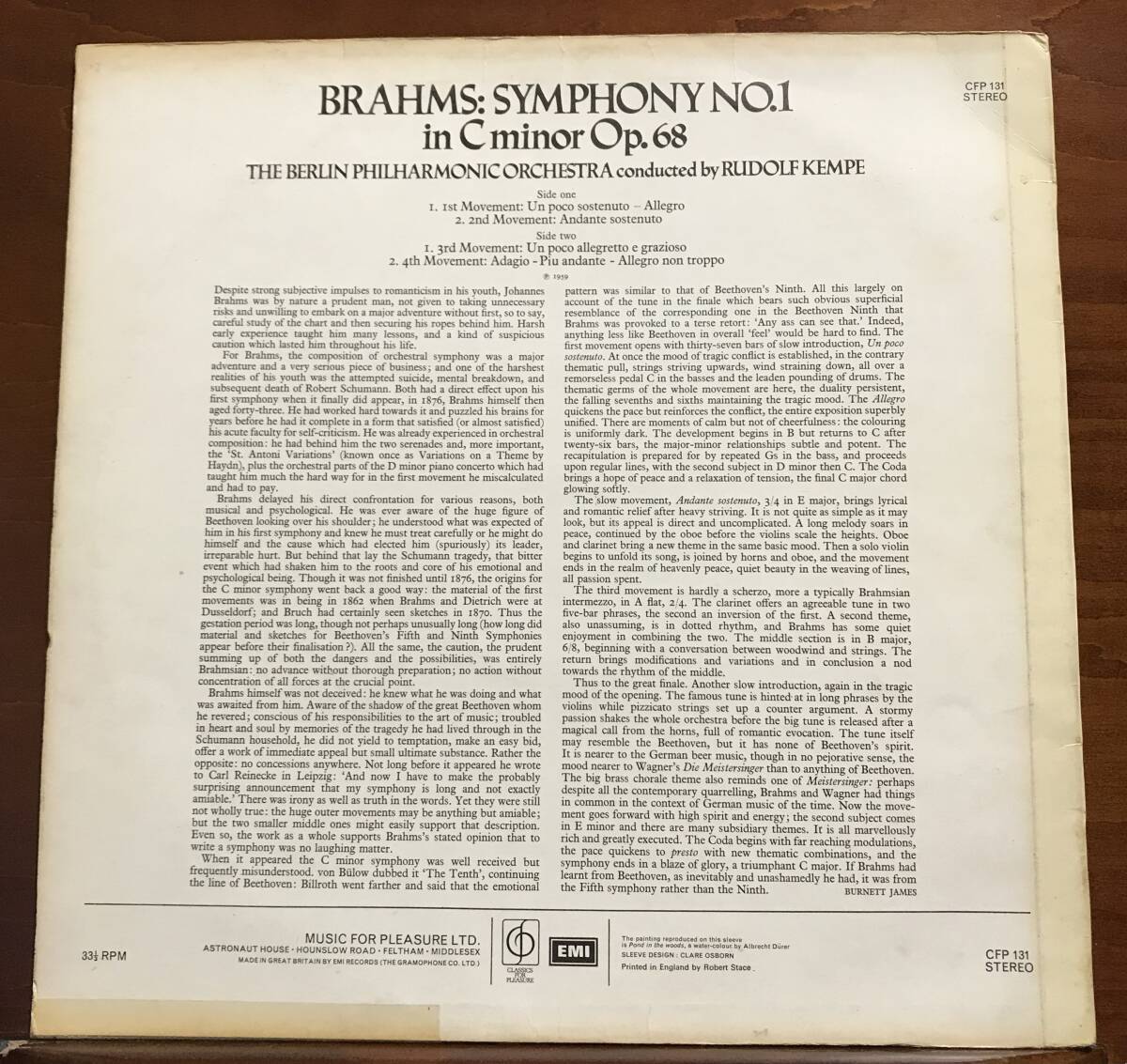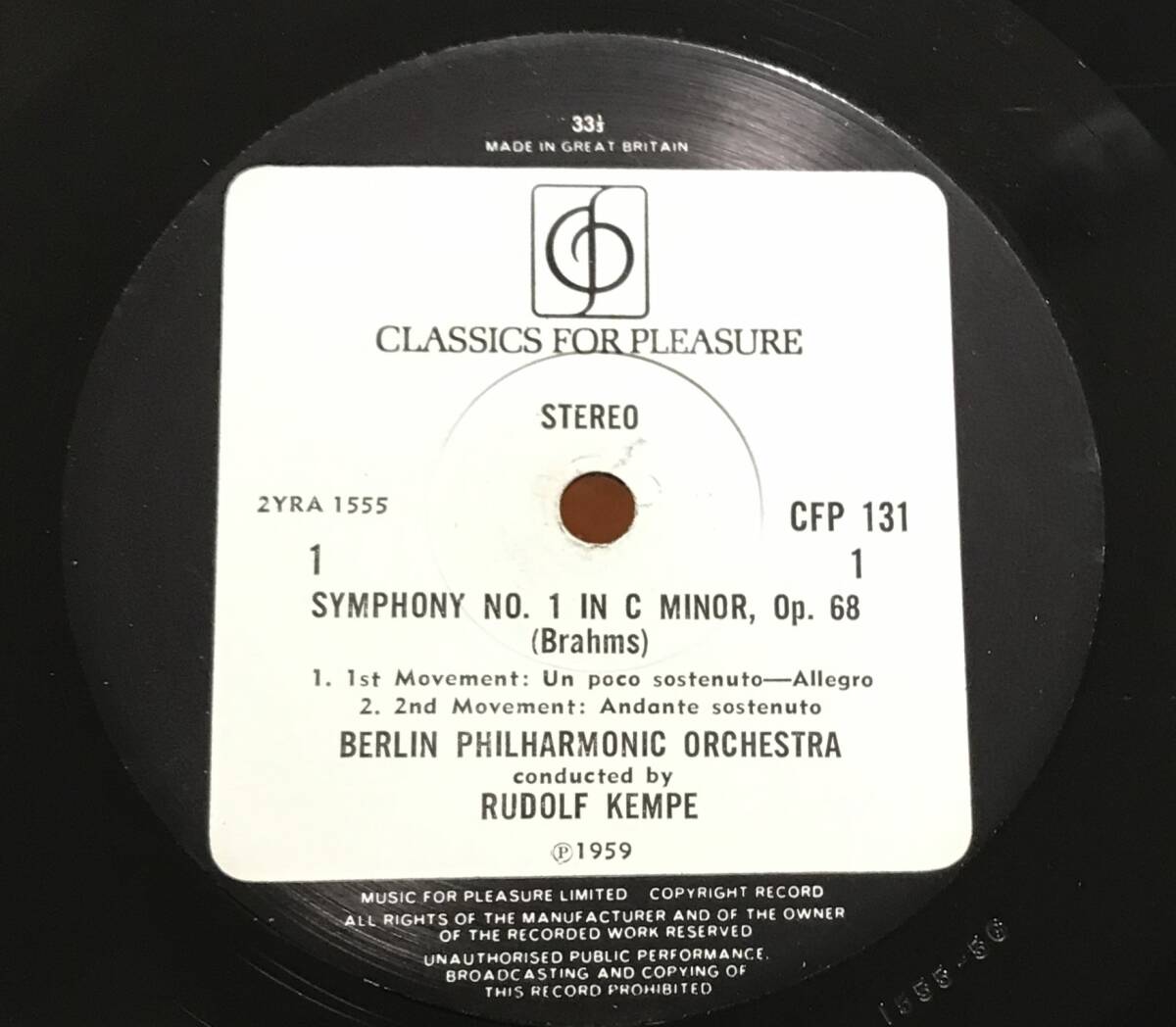 中古のケンペ 指揮 ベルリン・フィル演奏ブラームス:交響曲 第1番のアナログディスクです。