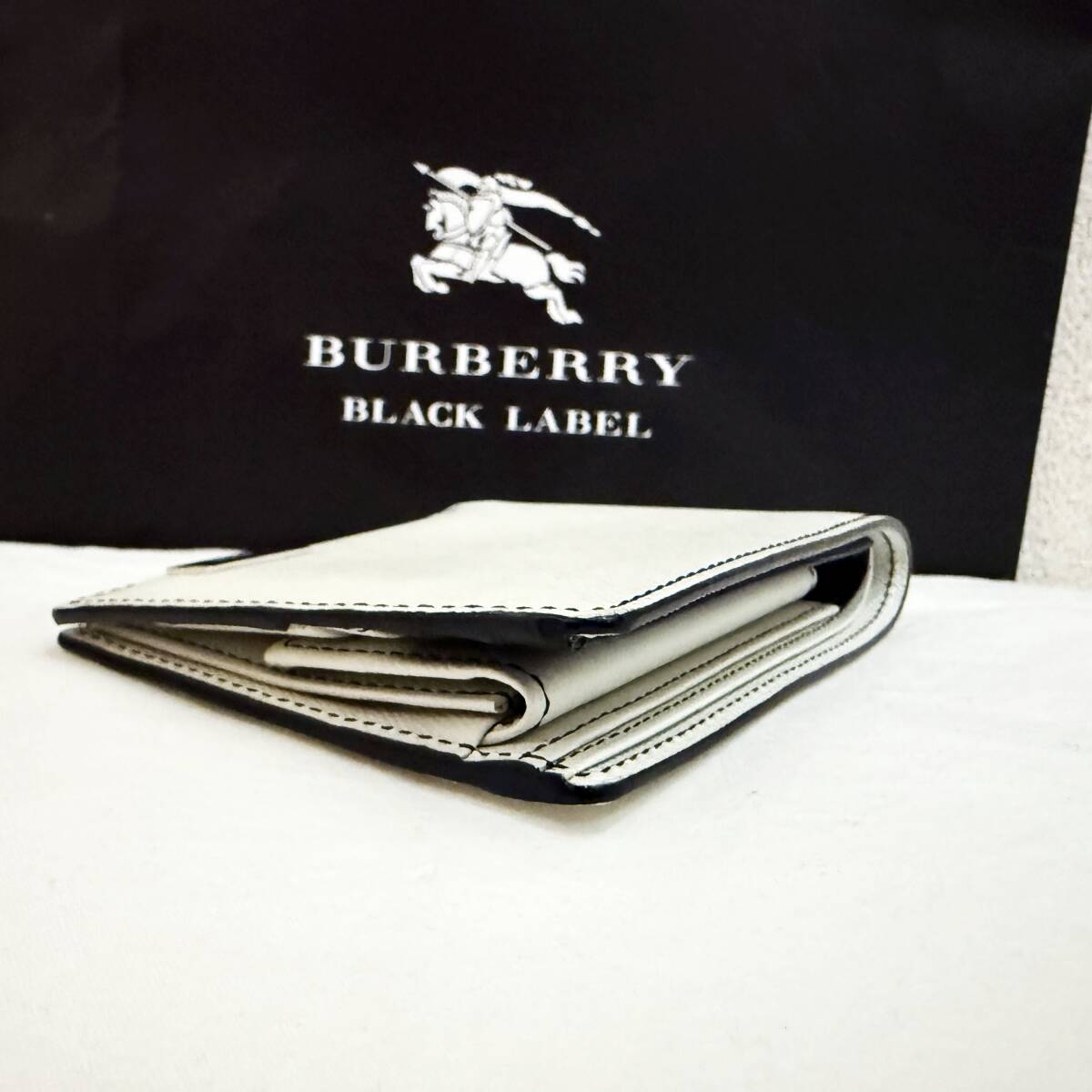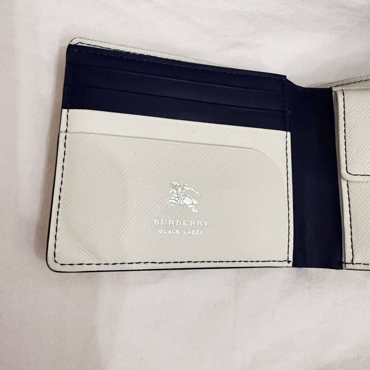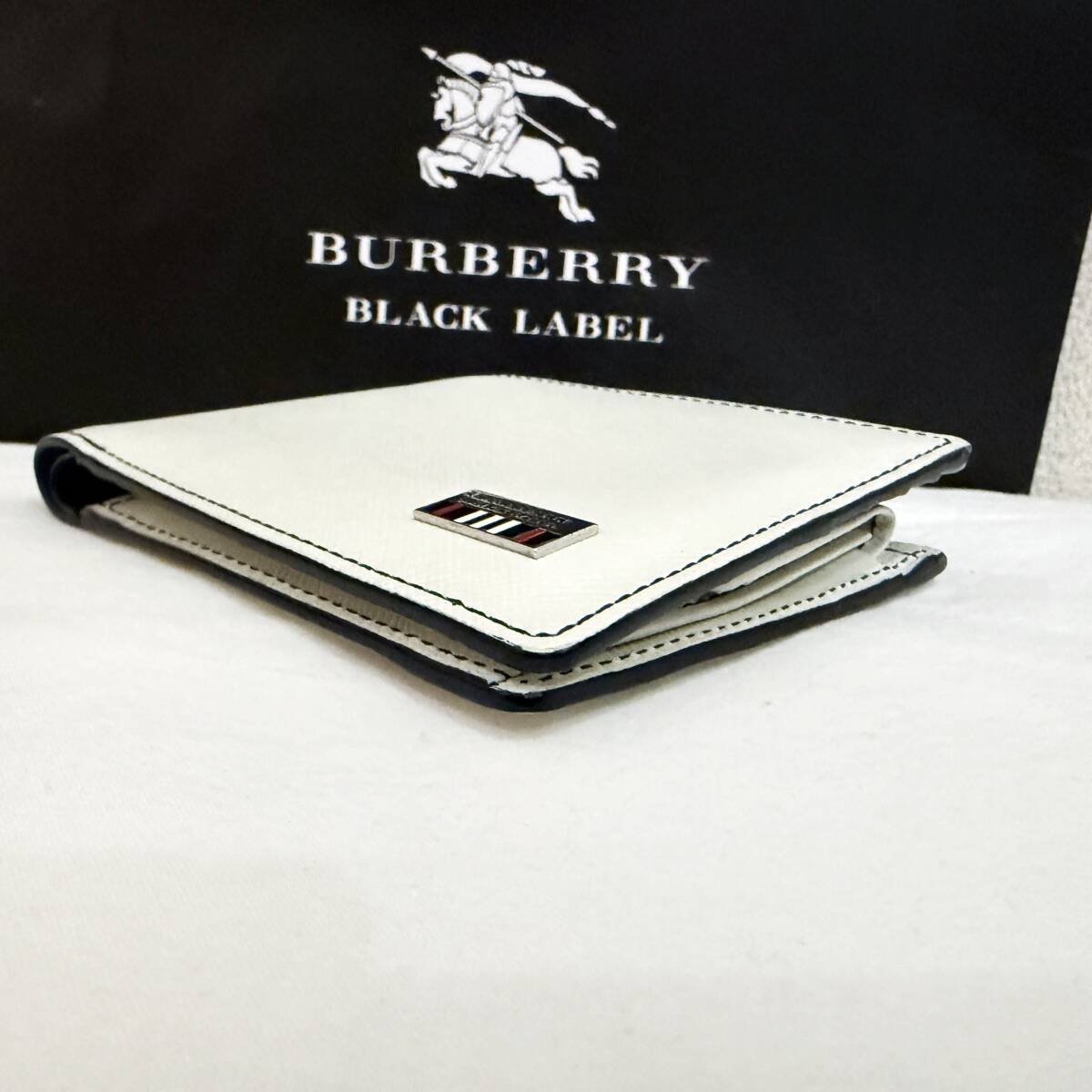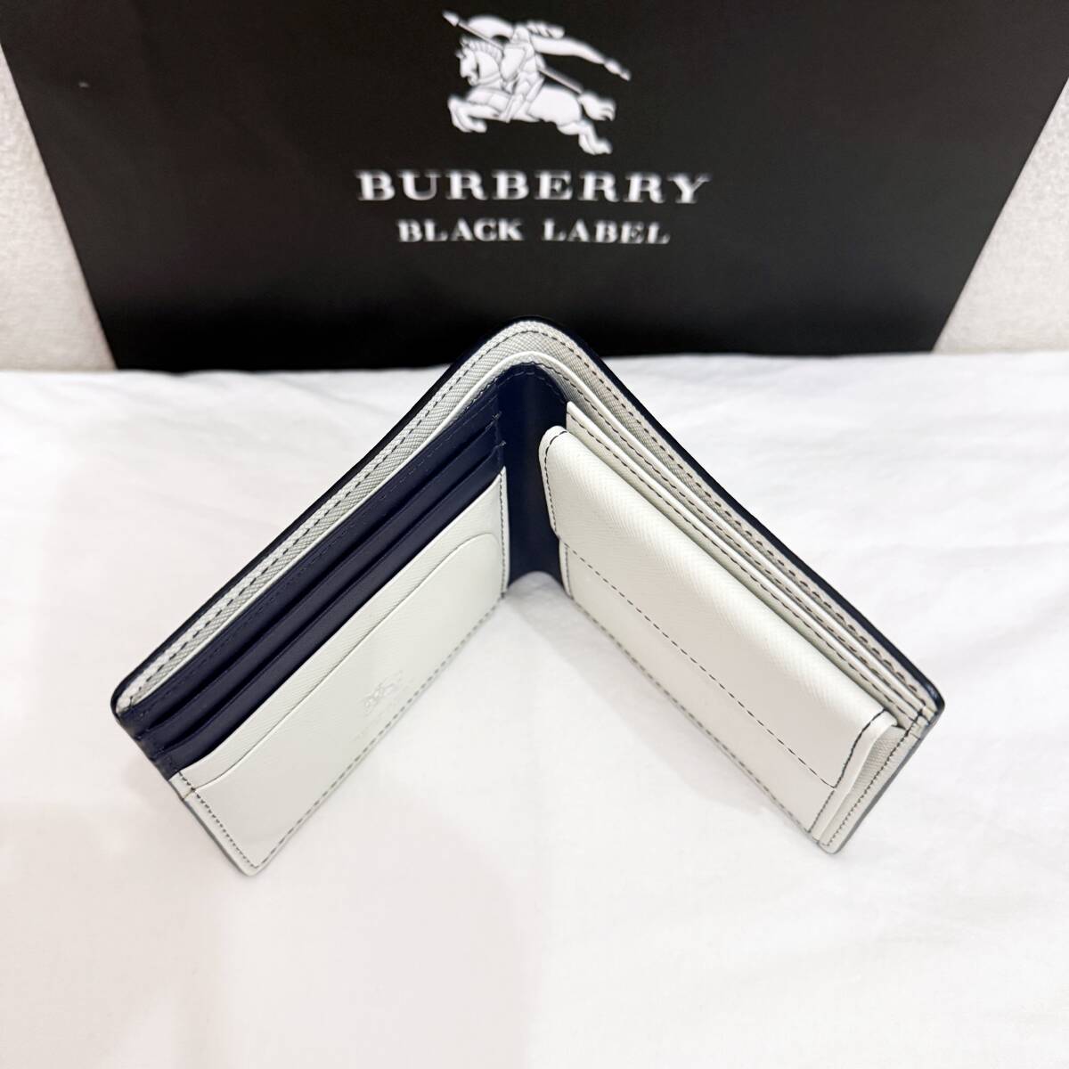 | 新品同様 極美品 BURBERRY BLACK LABEL バーバリーブラックレーベル 本革 二つ折り財布 ホースマーク 白 紺 箱付き #3227 | |