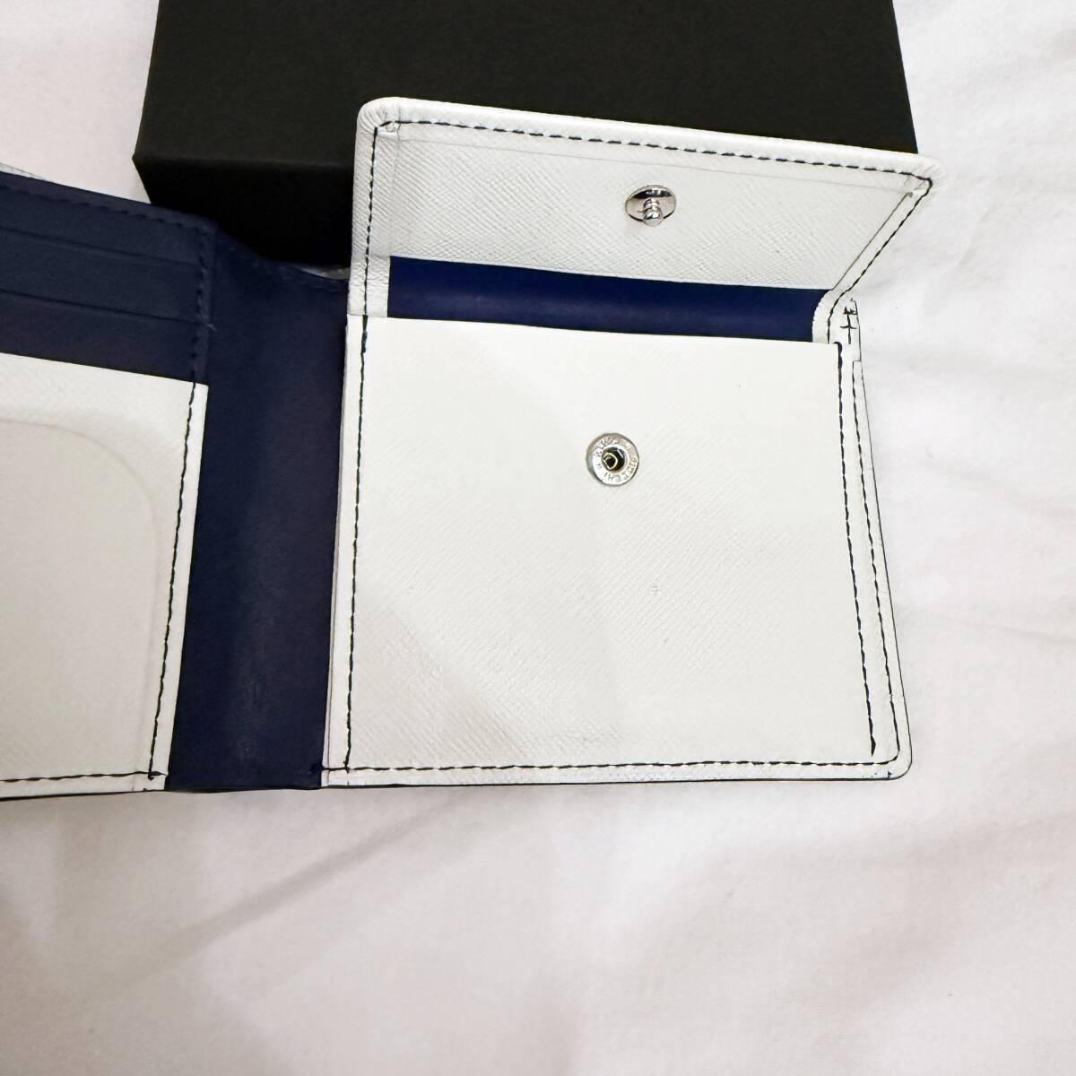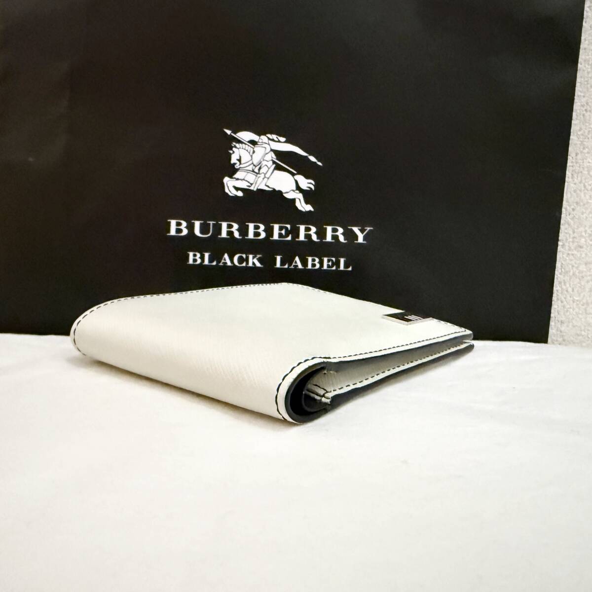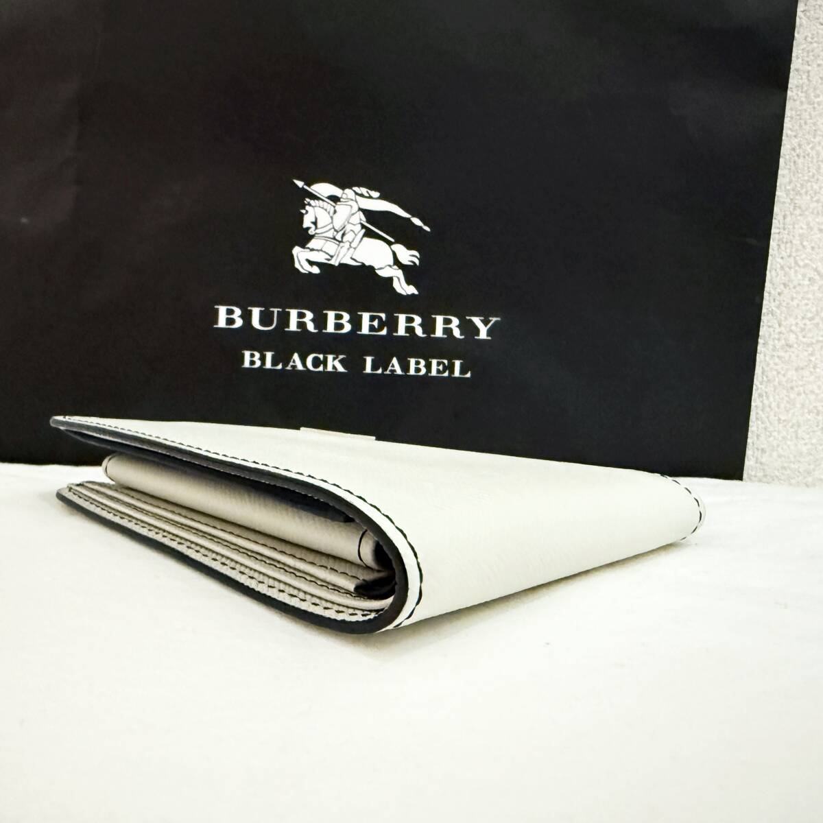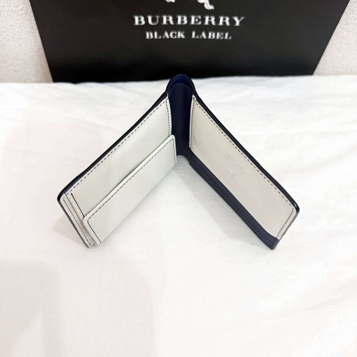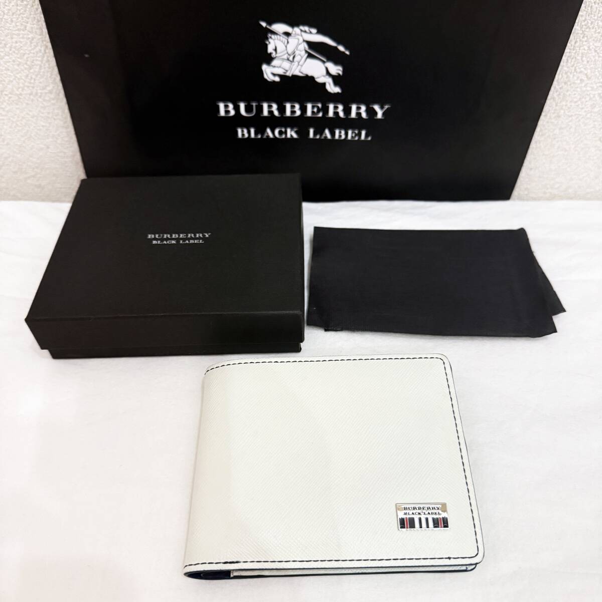 | 新品同様 極美品 BURBERRY BLACK LABEL バーバリーブラックレーベル 本革 二つ折り財布 ホースマーク 白 紺 箱付き #3227 | |