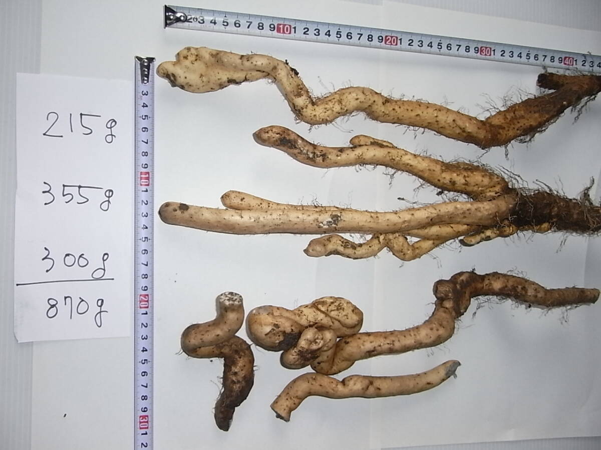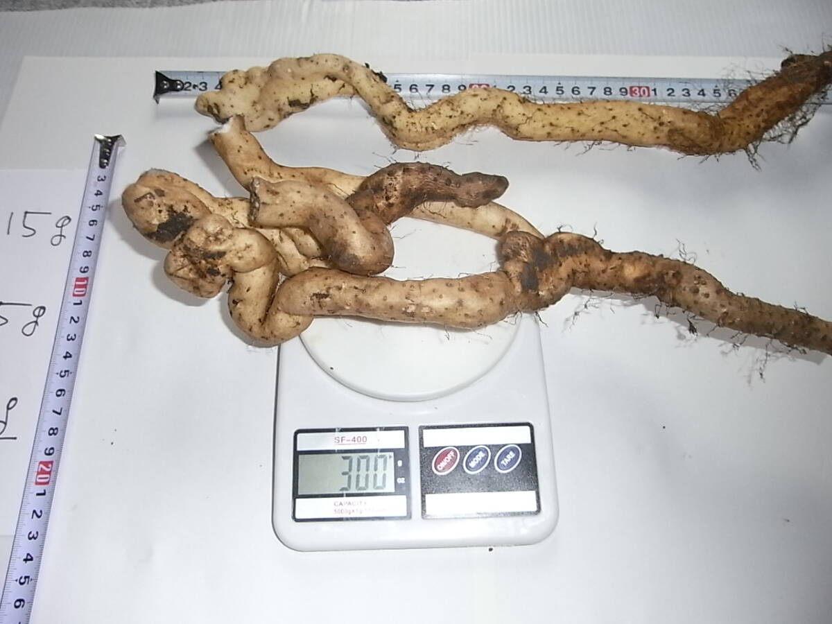 群馬県産自然物を趣味で採取した自然薯で、11/25に近くの山にて採取した天然物です、硬い岩含みの粘性土で先端が欠損したり、枝分かれ、折れたり扁で形が悪いクズ薯です、重量は3本計で870gです、クズ薯ですが需要があればいかがでしょうか 、ナマモノですので取引を素早くお願いします、発送はおてがるゆうパック80サイズです、NR,NCでお願いします、なお最近落札後未連絡の落札者の方が多すぎ(3件/6件中)ます、評価悪率及び評価の少ない方、新規の方は質問欄にて確認してください、必要に応じ入札取消、落札者削除を行います。