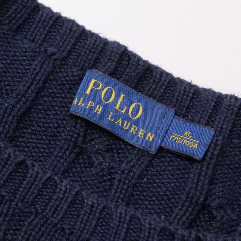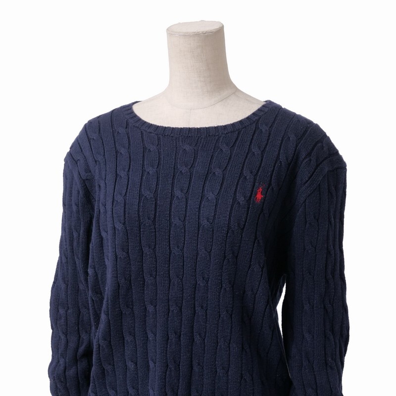 | TJ3429=ポロラルフローレン/POLO RALPH LAUREN 211570012001*ケーブルニット*コットンニット*ロゴ刺しゅう*プルオーバー*セーター*XL*紺系 | |||