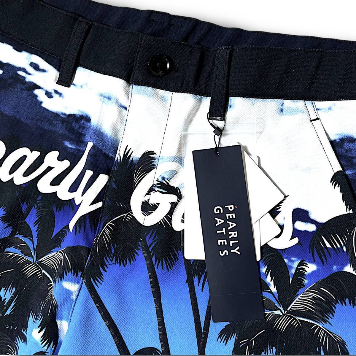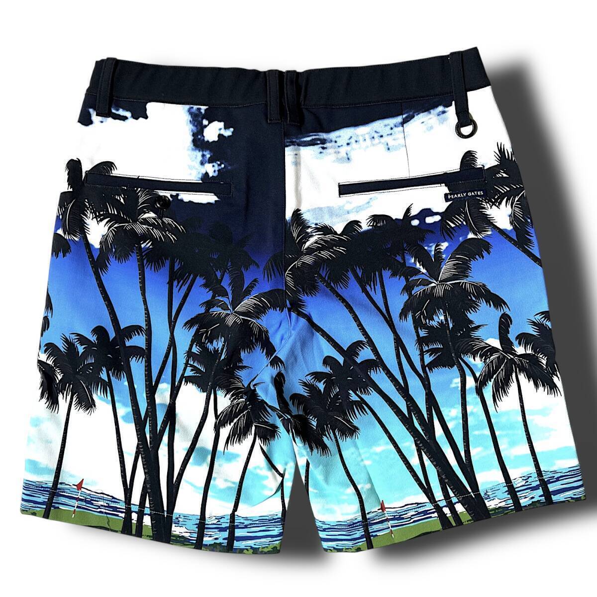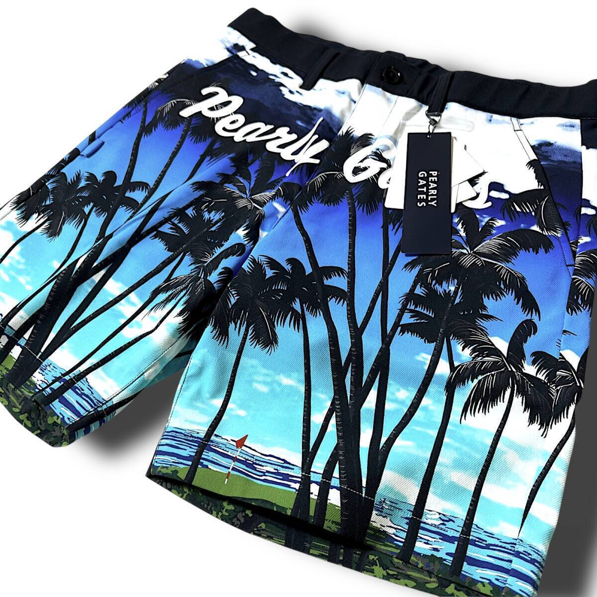 タイトル 新品 PEARLY GATES パーリーゲイツ 定価3万 撥水耐久ポリタフタ ヤシの木 アロハ ショートパンツ ハーフパンツ ゴルフウェア 5 L GOLF メンズ スポーツ レジャー 普段使い タウンユース カジュアル 春夏秋 ブルー系