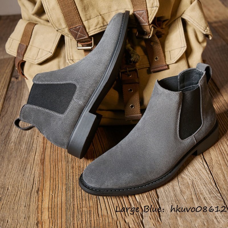 高級品★スエード革 マーティンブーツ メンズ ショートブーツ 職人手作り 牛革 レザーブーツ 皮靴 紳士靴 作業靴 三色選択 グレー 26.5cm