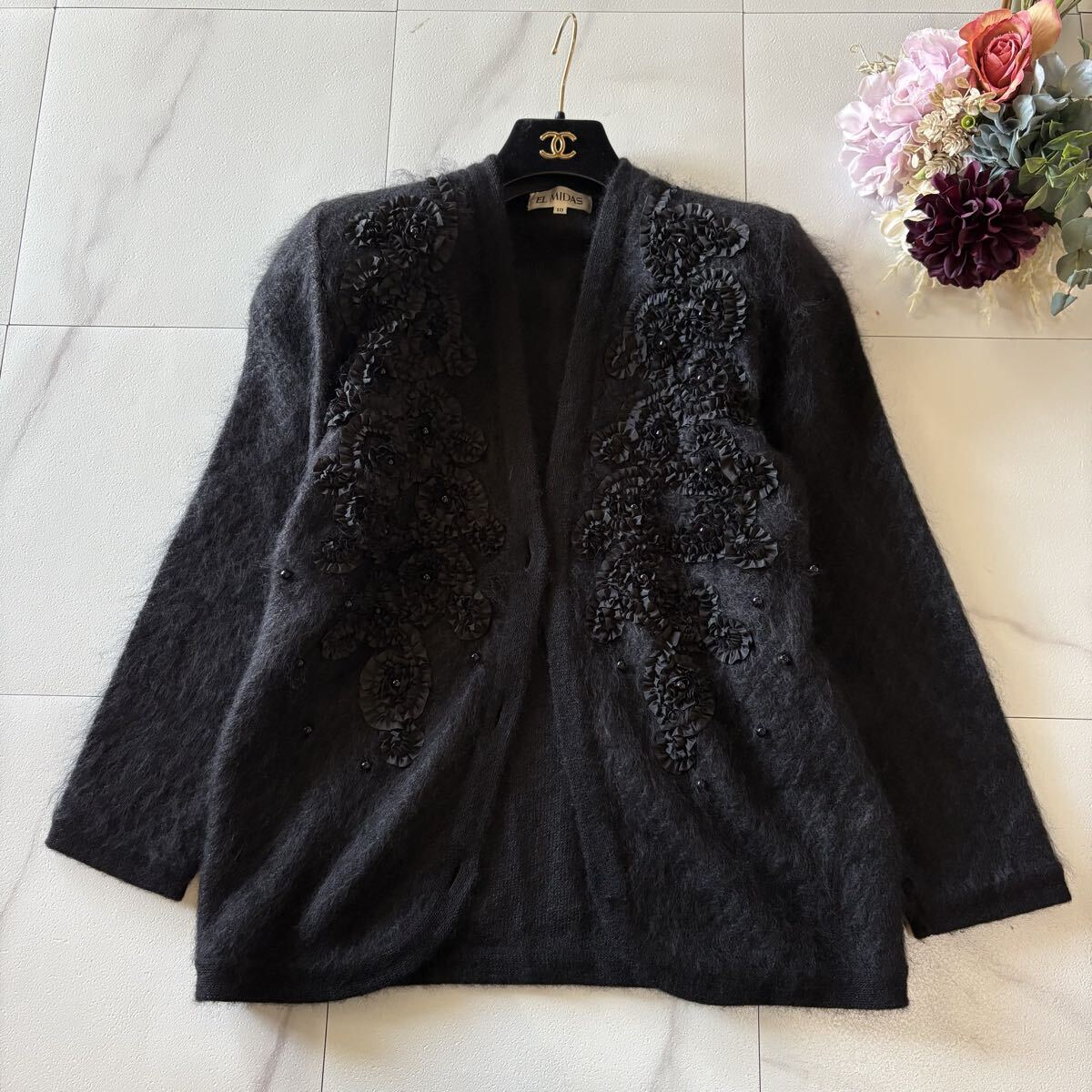 EL MIDAS エルミダ カーディガン 花柄 レース リボン カーディガン 羽織り 10サイズ 長袖 黒 モヘア ニット [浏览原始页面]