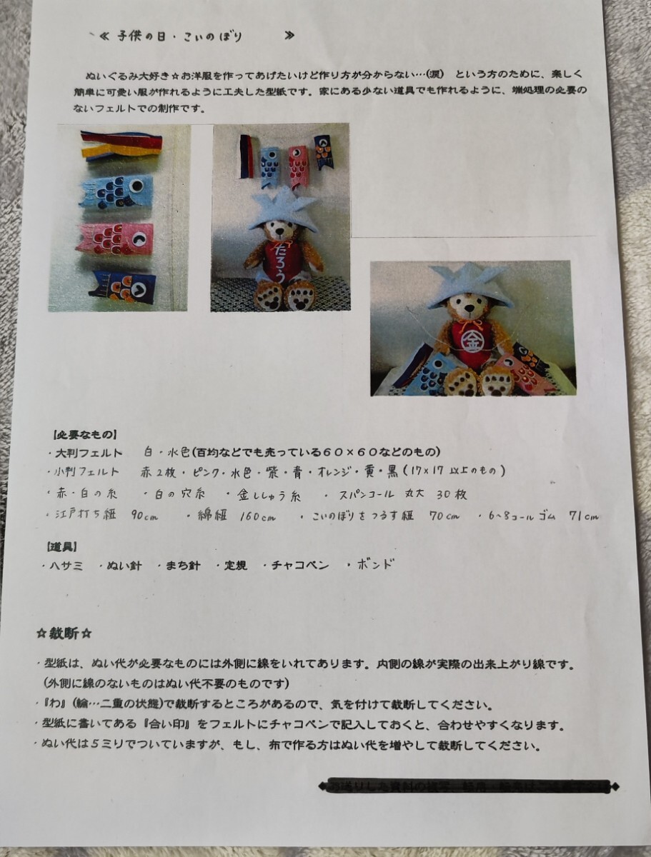 ☆商品詳細☆こどもの日こいのぼりぬいぐるみの金太郎前掛け ズボンの作成用型紙の出品です。2026年の5月の節句にお子様やご趣味で可愛いこいのぼりやダッフィーなどのぬいぐるみの金太郎前掛けやズボンを作ってみませんか?形状裁断がわからない方にこいのぼりなど作成用の型紙と作成方法です。型紙と作成方法のみの出品ですので、ダッフィーのぬいぐるみや材料や道具ははありませんので、落札者様でご用意ください。これを下に上手く造れればにて出品もできるかも?一部しかありません。がよろしくお願い致します。