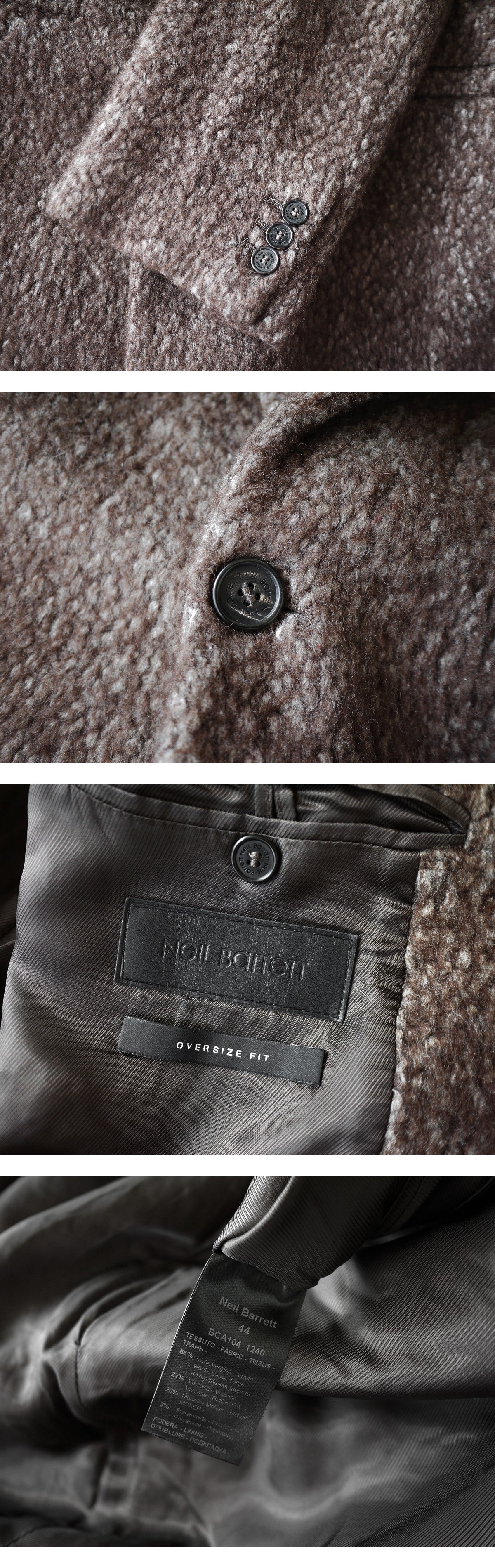 brand NeIL BarreTT made in Italy price \297,000(参考上代) material wool 55% viscose 22% mohair 20% polyamide 3% color Brown size 44 肩幅48(ドロップショルダー) 着丈99 袖丈61 身幅53(多少の誤差はご了承ください) 状態 使用感のあまり感じられない美品となります。裏地含めダメージは見受けられず末永くご使用頂ける状態です。 |