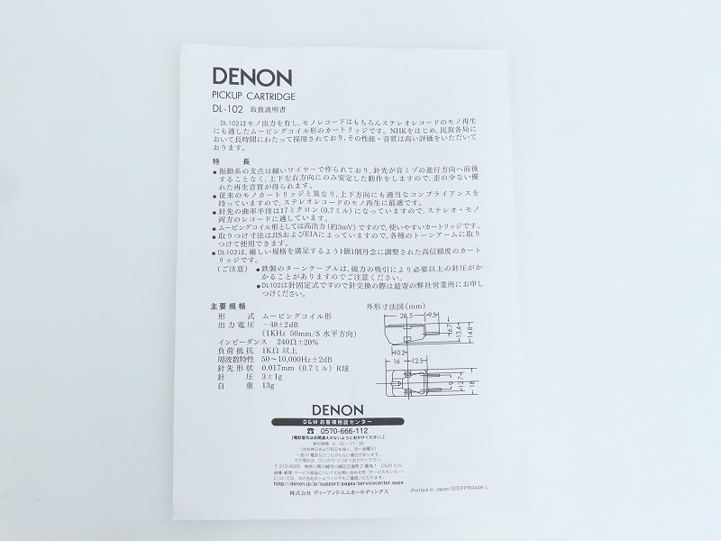 ■メーカー : DENON ■型番 : DL-102 ■MC型カートリッジ ※audio-technica製シェル付での出品となります。 【商品の状態 当店での確認内容】 音出し確認はできておりますが、若干針が曲がっております。 「商品の状態」に関しましては当方主観の目安となります。外観などは中古品で個人差もありますので詳細は画像にてご判断ください。 画像にて不明な点はご質問下さい。 出品商品は画像のものですべてになります。画像に写っているもの以外は付属いたしません。 【送料 全国一律 950 円 沖縄、離島は別途お見積り】 ※送料がお得になるサービスです(下取りシステムのご案内です) ストア決済利用時にクレジットカードやPayPay残高/PayPayクレジットを利用の方は留意点がございますのでこちらを参照上ご利用ください。 当ストアでは商品を安全にお届け出来るよう提携運送会社と協議の上、発泡緩衝材や強度段ボールの使用等 運送会社が指定する梱包方法や資材を採用しております。 より安全にお届け出来るよう商品仕様により梱包サイズが大きくなる場合や個口数が増える事がございます。 【当ストアオークションルールを入札前に必ずご確認ください。】 【落札後の取引手順】 ・落札後は取引ナビにて、必要事項をご入力後、送信ください。 取引終了後48時間(土、日は除く)以内に入力をお願い致します。 ※ご連絡が頂けない場合は落札者様都合でのキャンセルとさせていただきます。 ・落札代金(商品代金+消費税+送料)の入金をお願い致します。 ※大型商品の場合は送料確定後の決済となる為取引ナビを入力頂き、当ストアより送料のご案内が来るまでお待ちください。(土曜、日曜、祝日の場合は翌営業日より順次ご案内いたします) ・お支払い方法はクレジットカード/PayPay残高/PayPayクレジット/PayPay銀行/ゆうちょ銀行のみです。 ※商品代金引換(代引き)のお取り扱いはしておりません。 ※領収証の発行が必要な方はご連絡ください。 ※銀行振込の際の振込手数料はご負担願います。 ・入金確認後に出荷手配を致します。 (原則入金確認後3営業日以内に発送いたしますが、大型や重量のある製品はお時間をいただく場合もございます。) ・発送は当店指定の運送会社の元払いのみでの発送となります。 ※他の運送会社、送料代引き等は致しかねます。 ※落札者様ご自身での運送会社の手配いただく事も可能ですが荷物事故の責任の所在の問題上、梱包は致しかねます。 ※店頭にお越し頂き手渡しも可能(福岡市早良区)です。ご希望の方はご落札後にご連絡下さい。 ・大型/重量物商品の送料につきましては商品の特性上、荷降ろし状況等により送料が大きく前後し運送業者に別途見積りが必要な為、早めのお問い合わせにてお見積り上、入札をお願い致します。 【初期不良の保証について】 ・商品到着後の初期動作不良、また配送中の事故による破損、不具合が有る場合は、商品発送後10日以内に当ストアまでご連絡ください。当ストアでは修理での対応を優先させて頂きますが、修理不可の場合は全額返金させて頂きます。 (商品代金+消費税+送料のお支払い頂いた金額となります) 【初期不良の保証の対象外について】 次の場合は保証の対象外となりますのご留意ください ・ジャンク商品、現状商品、難あり商品での出品商品。 ※難あり商品に関しましては動作確認時に一部動作不良が確認された商品になり、記載している動作確認以外にも、動作不良がある可能性もございます。こちらに関しましても保証対象外となりますことをご理解ください。 オーディオ機器で前オーナー様が当店にてわからない範囲で部品が交換されている場合。 (当店でも全てのオーディオ機器の仕様は把握しておりませんので画像にてご判断、または入札前にご質問をお願いします) ・楽器類の特殊機材(マイクロスコープ等)での確認までは行っておりません。気になる方は事前にご質問いただくか、入札をお控えください。 ※初期不良に関しましては【商品の状態】に記載のもの、またそれによって起因する動作不良は対象外です。 ※商品発送後10日を過ぎてのご連絡は対応が出来ませんので、商品が到着しましたらお早めに確認をお願い致します 【メーカー保証の加入・継承】 ・未使用品、展示品やメーカー保証期間が残っている商品に関しまして、メーカー保証の加入、継承が必要な方は、落札後取引ナビ内にて当ストアにお知らせください。商品発送までにご連絡いただけない場合、メーカー保証の手続きを承れない場合があります。 【評価について】 ・評価不要の場合、必ず取引ナビの「要望欄」にてお知らせください。それ以外でご連絡をいただいた場合、対応できない可能性がございます。一度行った評価はシステム上取り消しが行えませんのでご了承ください。 【入札削除・キャンセルについて】 ・入札後はトラブル防止の為いかなる事情がおきましても入札を削除等は致しておりません。 ご検討の上入札をお願い致します。