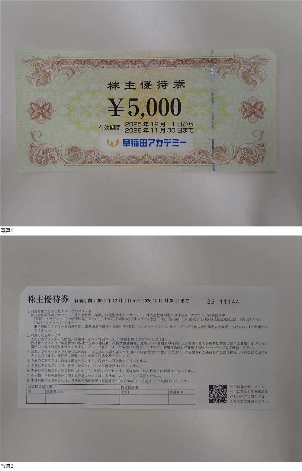 | 8978★早稲田アカデミー株主優待券5000円 2026年11月30日まで |
