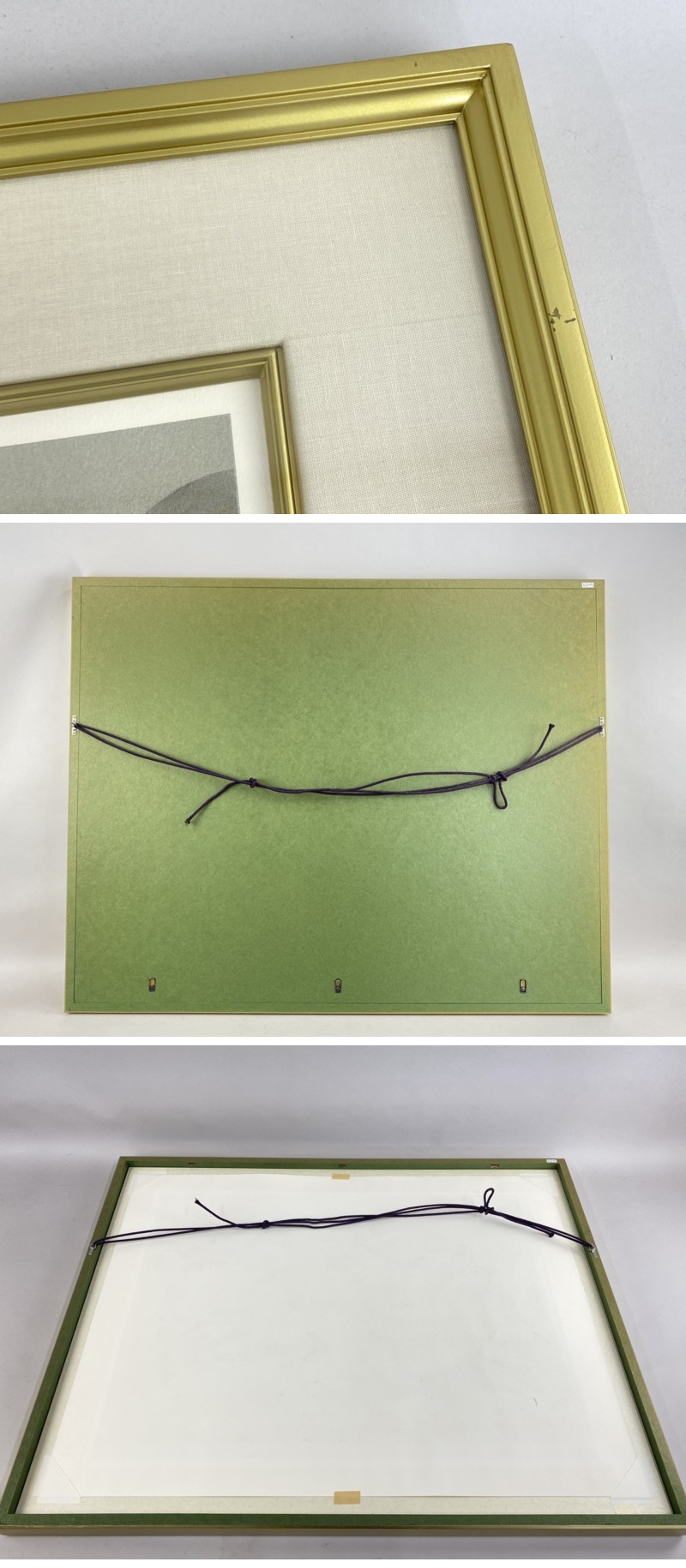 | ◇商品情報◇ | 当店の商品をご覧いただきありがとうございます!! 【真作 中島千波 シルクスクリーン 牡丹 花 32/180 額装】です。 額縁のサイズ:縦 約77cm、横 約95cm *若干の誤差はご容赦下さい* ・経年保管品のため擦れや小キズ、額裏はヤケがございます。 ・光の反射で白っぽく写ったりしている場合もありますが、作品には問題ございません。 ・茶筅はサイズ比較用の備品ですので付属はしません。 ※絵画などの同梱はできませんので予めご了承ください。 ※お知らせ※ 2017年10月25日からの<絵画の出品に関するルール改定>にともない、当方では美術品の出品に於いて、特定の作者の作品と記載もしくは署名落款がある場合【真作】または【模写】と明記することとなりました。 タイトルにございます分類は下記の通りとなります。 ご確認の上、十分にご検討いただきご入札をお願い申し上げます。 【真作】本物であると断定できる作品・版画.リトグラフ等も含みます。 【模写】わずかでも真作ではないと疑いのある作品、及び作者不明の作品は全て模写と表記いたします。 また、弊社で判断出来ない場合も含まれます。 【印刷】印刷もしくは工芸印刷の作品 上記に該当しない作品(署名落款のないもの)につきましては、特に表記はございません。 ~万が一、「真作」でないことが判明した場合は返品を申し受け致します。~ ※目視チェックをしていますが、表記漏れや見落としや細かな擦れ・薄汚れなどがある場合もございますので予め画像をご確認の上でご入札をお願いいたします。 商品のトップ画像端に写っている茶筅はサイズ比較用の備品ですので付属はしません | ||||||||||||||||||||||||||||||