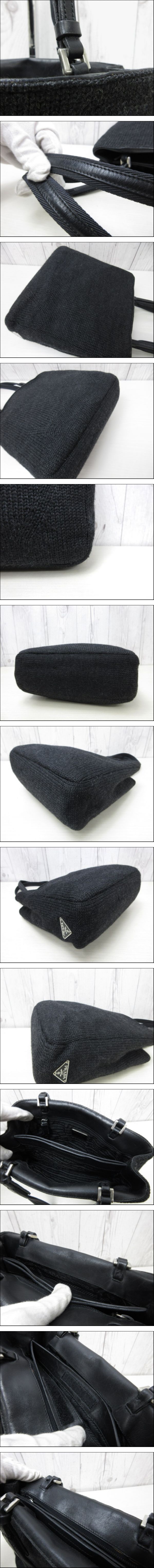 | 極美品 PRADA プラダ ハンドバッグ ショルダーバッグ バッグ ニット×レザー 黒 94376Y | ||