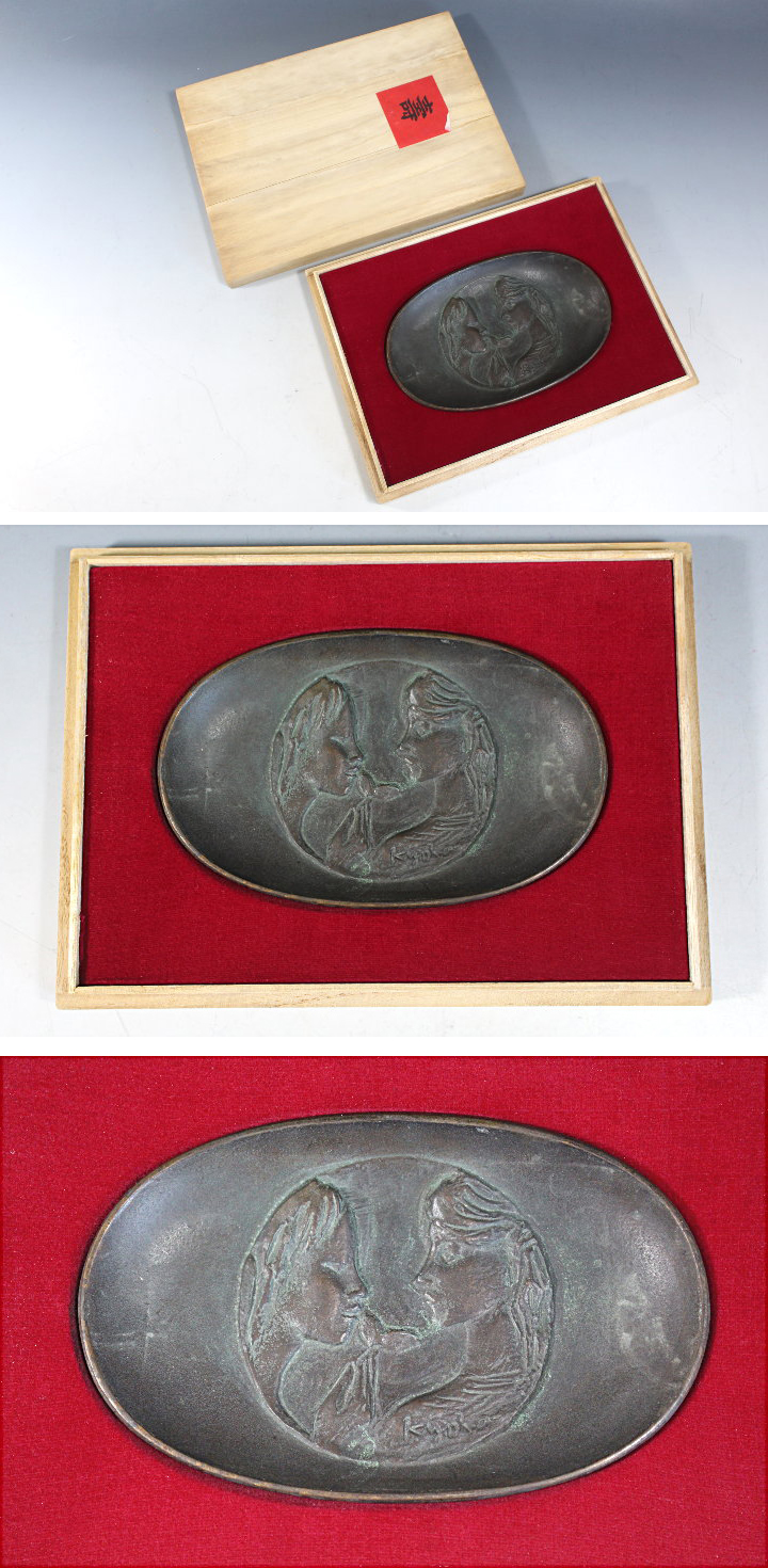 サイズ:14.7×9.2×1.5cm 朝倉文夫を父にもつ、女流彫刻家/朝倉響子 の レリーフ作品(双葉 )です。 2016年に90歳にて亡くなりました。 箱の表には「壽」の紙が貼られています。 蓋裏に「/朝倉響子作」とあります。 作品には「/KYOUKO」のサインがあります。 写真をご覧の上ご入札宜しくお願い致します。 ◆朝倉響子 1925年 彫刻家・/朝倉文夫 の次女として生まれる。 1948年 日展特選。以後1951年まで連続4回特選、審査員2回。 1956年 日展脱退。 1979年 第7回長野県野外彫刻賞受賞。 1980年 『朝倉響子彫塑集:光と波と』出版。 1982年 第13回中原悌二朗賞・優秀賞受賞。 1985年 作品集『Kyoko』出版。 2016年 5月歿 90歳。 | |