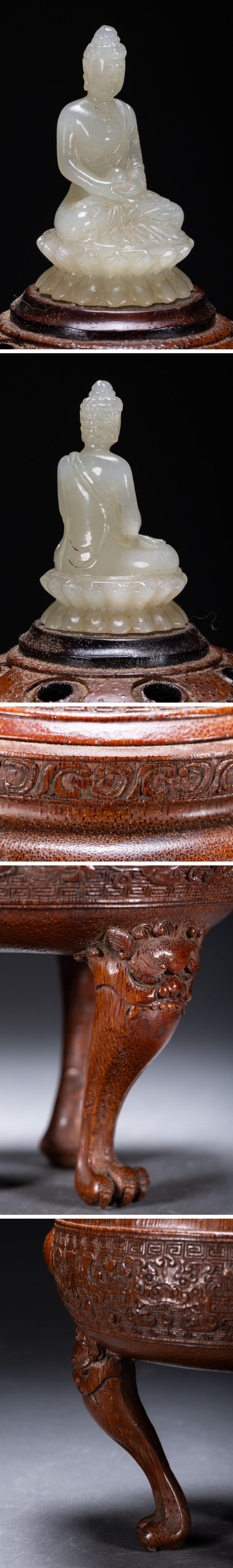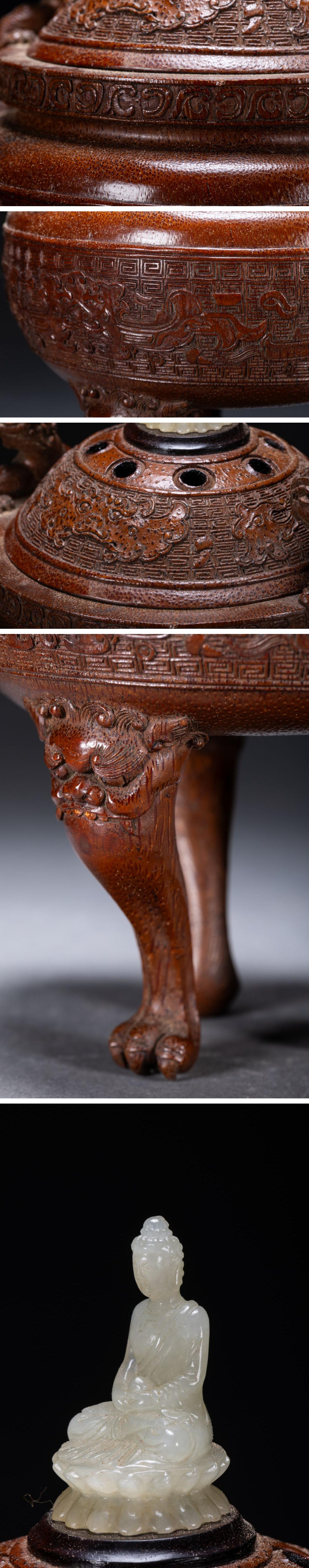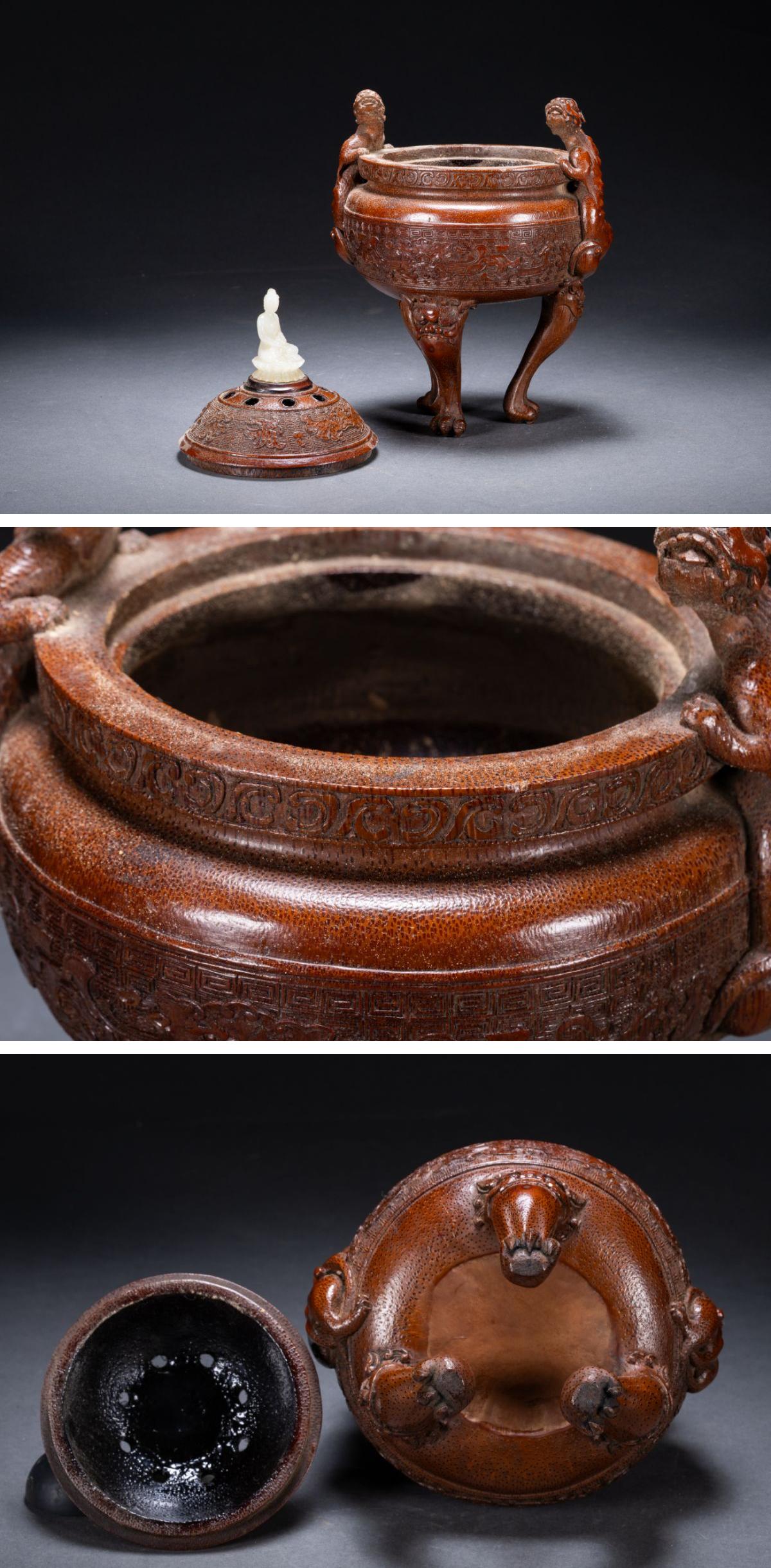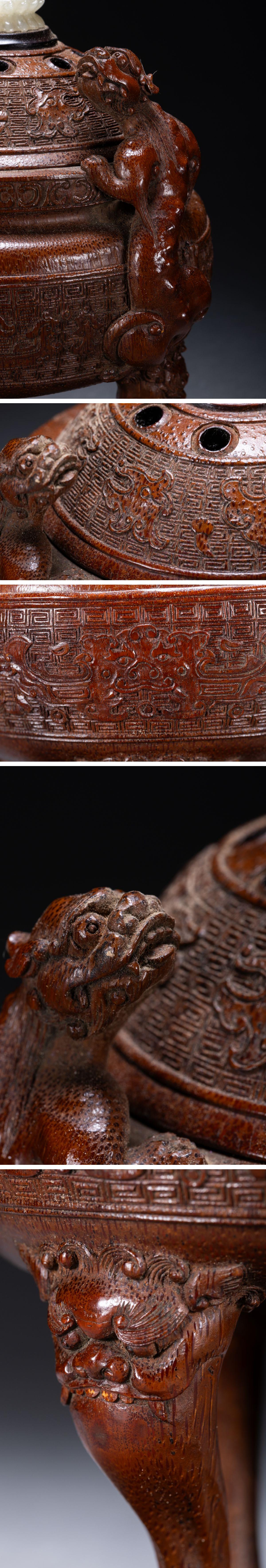 【清】某有名収集家買取品 清時代物 古竹彫り 双虎耳三足薫炉 当時物保証 古美術 骨董品7L11-65S15