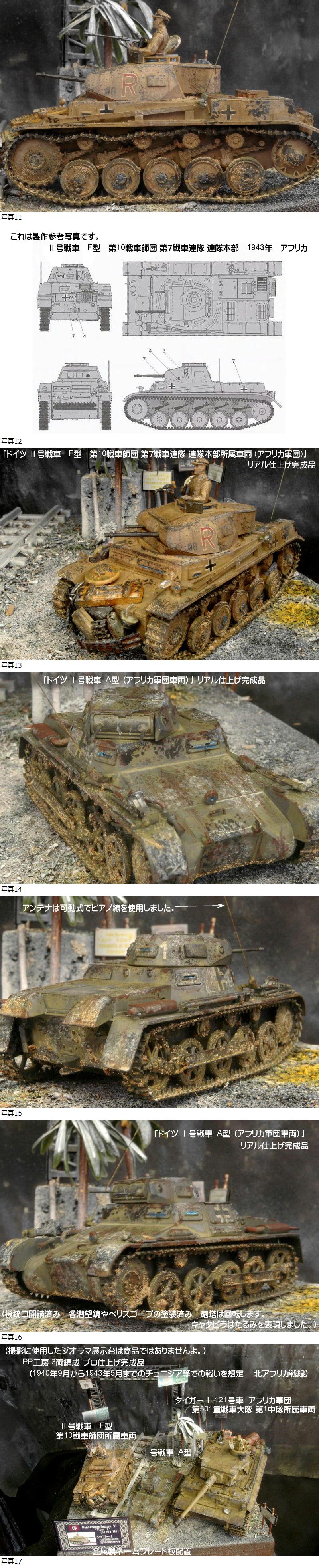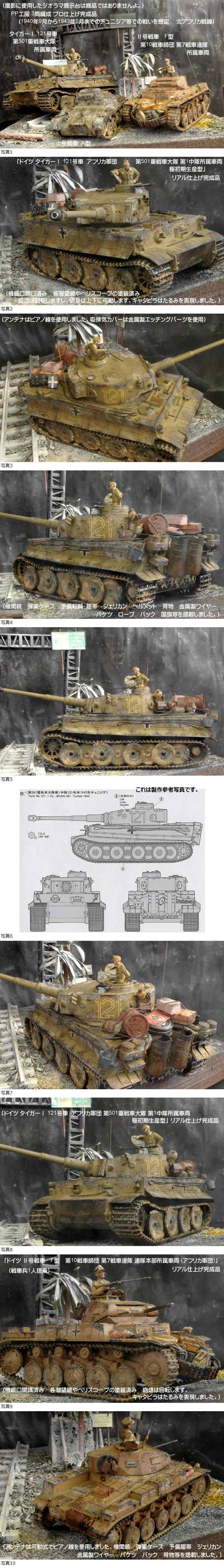 | ■今回の作品もジオラマではなく、3両編成完成品です。当店委託のプロモデラーが「ヘアスプレーチッピングや汚し塗装等」を施工するなどリアルに製作しており、クオリティは以下の商品説明の画像でも確認して下さいね。(撮影に使用したジオラマ展示台は、商品ではありませんよ。) ①1/35 「ドイツ タイガーⅠ 121号車 アフリカ軍団 第501重戦車大隊 第1中隊所属車両 極初期生産型」 リアル仕上げ完成品 (アンテナはピアノ線を使用しました。吸排気カバーは金属製エッチングパーツを使用しました。機関銃 弾薬ケース 予備転輪・履帯 ジェリカン ヘルメット 荷物 金属製ワイヤー バケツ ロープ バック 国旗等を搭載しました。)戦車兵1人を搭乗させました。 ②1/35 「ドイツ Ⅱ号戦車 F型 第10戦車師団 第7戦車連隊 連隊本部所属車両 (アフリカ軍団)」 リアル仕上げ完成品 (アンテナは可動式でピアノ線を使用しました。機関銃 弾薬ケース 予備履帯 ジェリカン 金属製ワイヤー バケツ バック 荷物等を搭載しました。)ドイツ兵1人を配置しました。 ③1/35 「ドイツ Ⅰ号戦車 A型 (アフリカ軍団車両)」 リアル仕上げ完成品 (アンテナは可動式でピアノ線を使用しました。) ■緻密で繊細に製作しており、とても精度の高い作品ですが、史実に忠実に表現したわけではありませんよ。(1940年9月から1943年5月までのチュニジア等での戦いを想定しました。 北アフリカ戦線) ■ヤフー画像検索で「PP工房完成品」と検索いただければ、当店の最近の作品の画像を見ることができますので、そちらも見ていただければ幸いです。・・・PP工房完成品 ★使用パーツなど(以下の作品がすべて付いてきますよ。) 1 1/35 タミヤ タイガーⅠ極初期生産型(機銃口開口済み 各潜望鏡やペリスコープの塗装済み 砲塔は回転しますし、砲身は上下に可動します。キャタピラはたるみを表現しました。)戦車兵1人配置しました。 2 1/35 タミヤ Ⅱ号戦車 F型(機銃口開講済み 各潜望鏡やペリスコープの塗装済み 砲塔は回転します。キャタピラは連結式でたるみを表現しました。)ドイツ兵1人を配置しました。 3 1/35 タミヤ Ⅰ号戦車 A型(機銃口開講済み 各潜望鏡やペリスコープの塗装済み 砲塔は回転します。キャタピラはたるみを表現しました。)ドイツ兵1人を配置しました。 4 金属製ネームプレート板「第501重戦車大隊 タイガーⅠ」を配置しました。 ■当店(PP工房)では、プラモ完成品を週3回位の割合で出品しておりますので、よろしくおねがいしますね。 | |