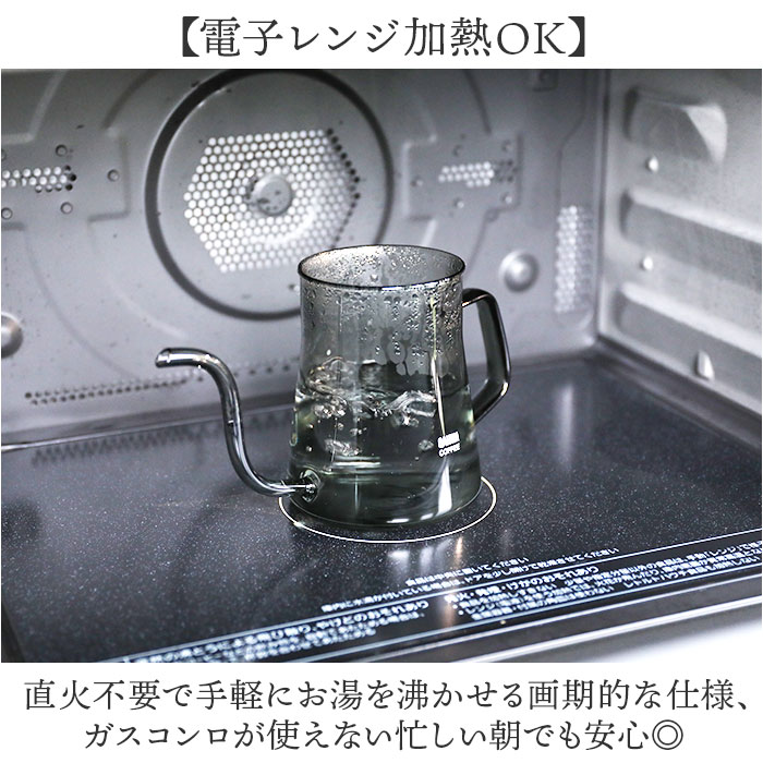 | 商品説明 | ・・【レンジで沸かせる耐熱ケトル】 ・やすらぎの時間を上質に、 ・新しいコーヒータイムを。 ・ ・【電子レンジ加熱OK】 ・直火不要で手軽にお湯を沸かせる画期的な仕様、 ・ガスコンロが使えない忙しい朝でも安心◎ ・ ・【細口注ぎ口で繊細に】 ・お湯の量を精密にコントロールできる設計で、 ・プロ級のドリップが叶う一品。 ・ ・【透明ボディで見やすい】 ・中の状態が一目で確認できるクリアな本体で、 ・注ぐ量も湯量管理もラクラク♪ ・ ・【食洗機対応でお手入れ簡単】 ・毎日使っても負担にならない利便性で、 ・コーヒータイムがもっと気軽に楽しめる〇 |