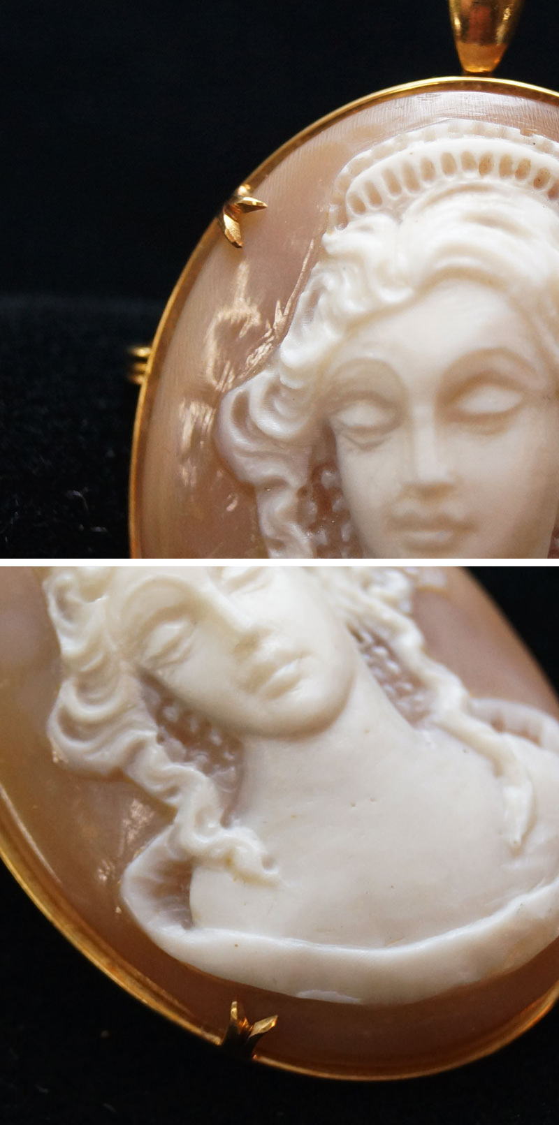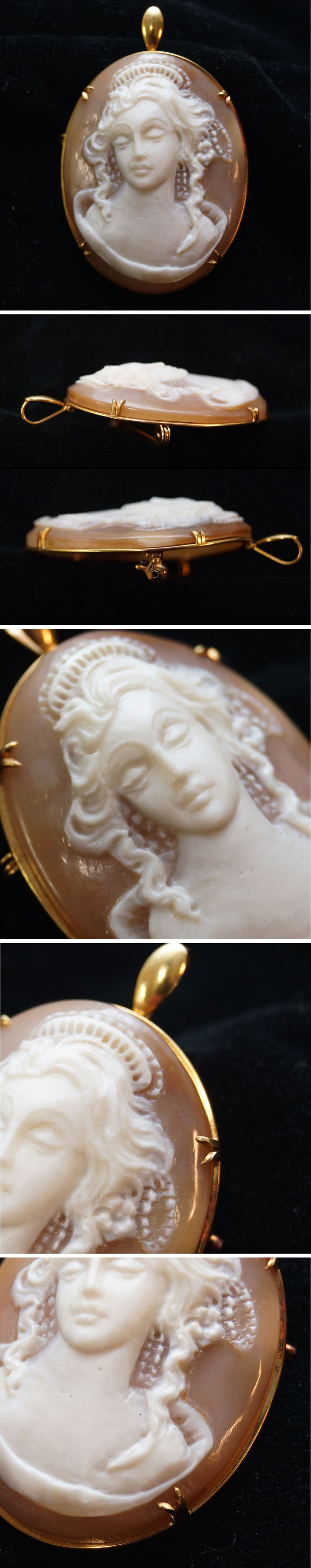 K18 カメオ ブローチ SARD めのう 27×35㎜ 9.85g 女性 ペンダントトップ 瑪瑙 18金 ヴィンテージ-836