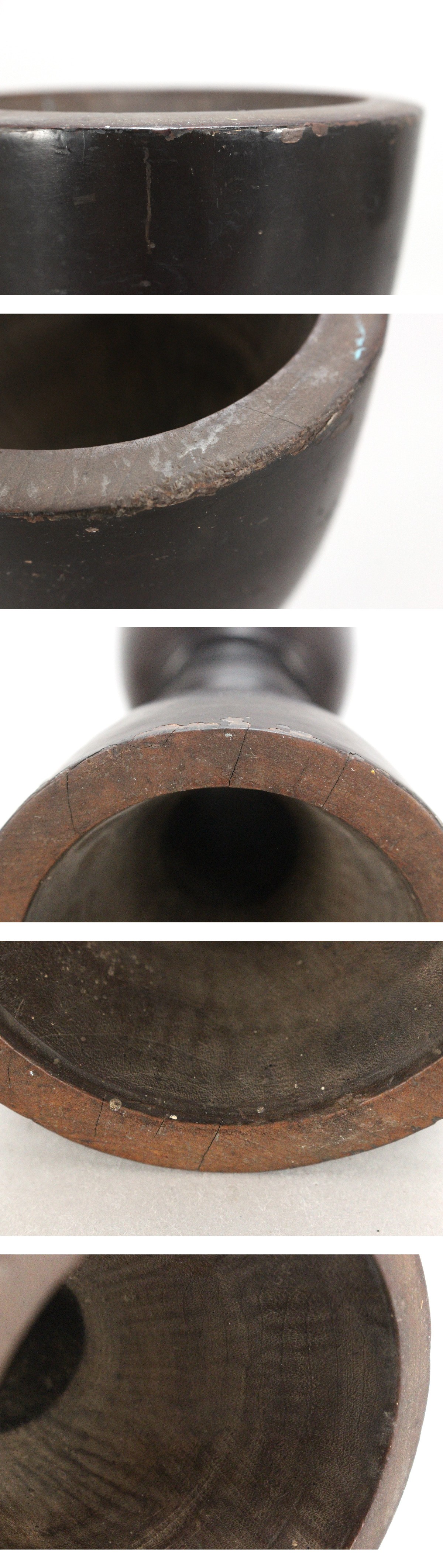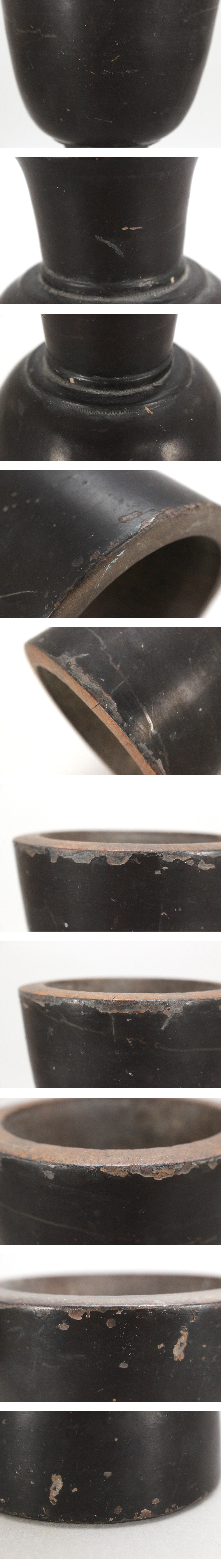 木地にヒビ、漆に欠けがございます。