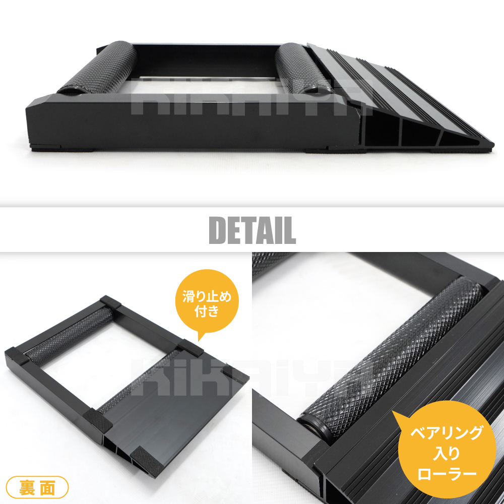 バイクのホイールクリーニングや様々なメンテナンスに! ●フロントホイールやサイドスタンド式バイクのリアホイールをローラーに乗せてメンテナンスなどを行います ●ローラーはベアリング入りでホイールを手で楽々回転させることが可能です ●軽量で持ち運びが簡単です |