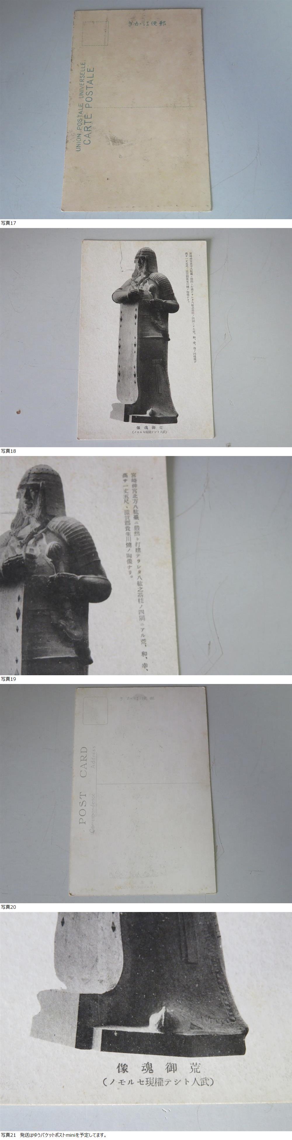 ※◎【本文の解説をよく読まれてご検討ねがいます。】 誠に申し訳御座いませんが24時以内に連絡、ご入金処理のできる方、および商品受領確認後に早急に取引ナビにて「受取連絡」のできる方のみ入札願います。 評価が新規の入札者様は入札の際、質問等で予め連絡ください。事前連絡がない場合はこちらで入札の取消(削除)を実施しますことを予めご了承願います。 転売業者の方は落札後「受取処理」の遅延、遅滞の発生率が極めて高いので入札をご遠慮願います。 商品名 : ★ 昭和レトロ 古いモノクロ 絵葉書 仙台市内・湯の浜温泉・中禅寺湖・荒御魂像等7枚 【現状品】 ★ 付属品 :なし。 商品詳細 :昭和の古いモノクロ 絵葉書の現状品です。※地域等バラバラです。 全体的に経年劣化により破れ、破損、シミ、汚れあります。外観は画像にてご確認ください。 以上ご興味のある方説明文をよく読まれた上、入札頂けます様お願い申し上げます。 説明文の理解力の無い方、思い込みの激しい方はくれぐれも入札しないで下さい。 入札終了まじかのご質問もお答えできませんのでご了承下さい。 到着後の使用方法等などについてサポートは出来ませんので予めご了承ねがいます。 入札の取り消し、キャンセルは出来ませんのでお間違えないようにお願致します。 発送は折り畳んで日本郵便(株)のゆうパケットポストminiを予定してます。 以上宜しくお願いします。 |