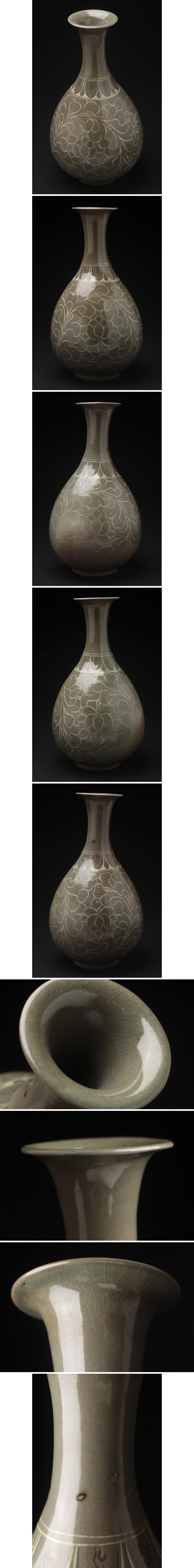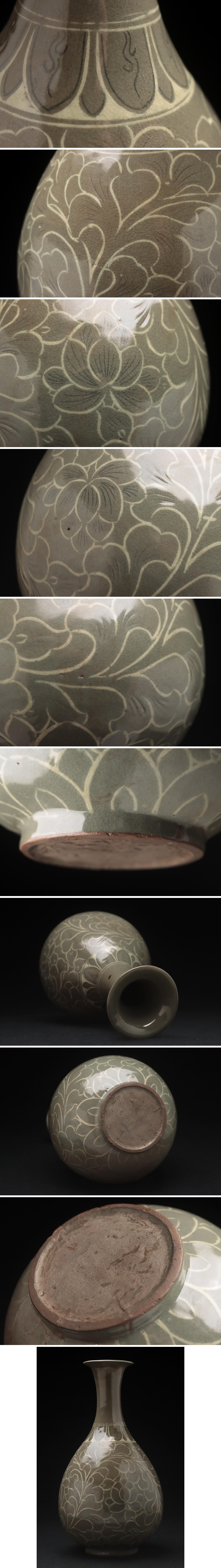 | ◆ 朝鮮美術 高麗 青磁象嵌 牡丹文瓶 高30.8cm・高麗青磁白黒象嵌唐草文花瓶・花入 朝鮮古陶磁 朝鮮古美術 ◆