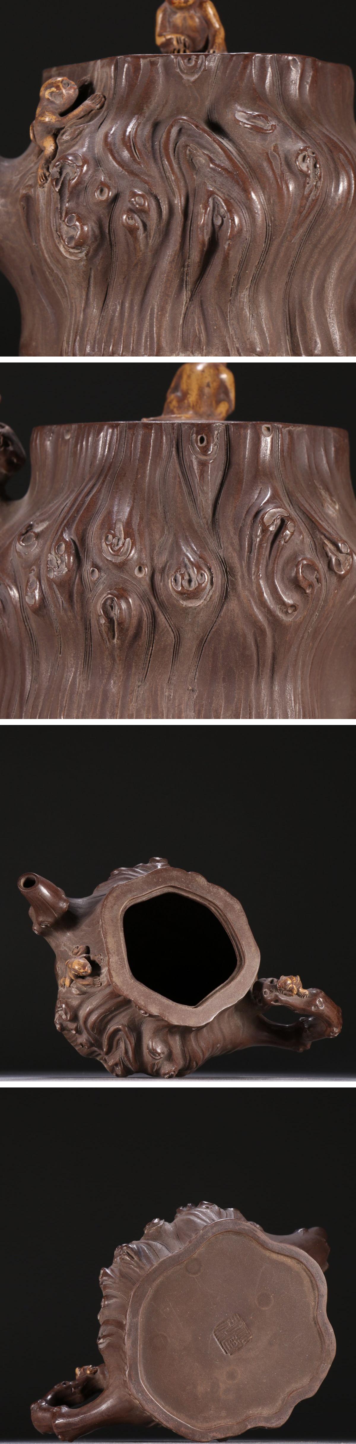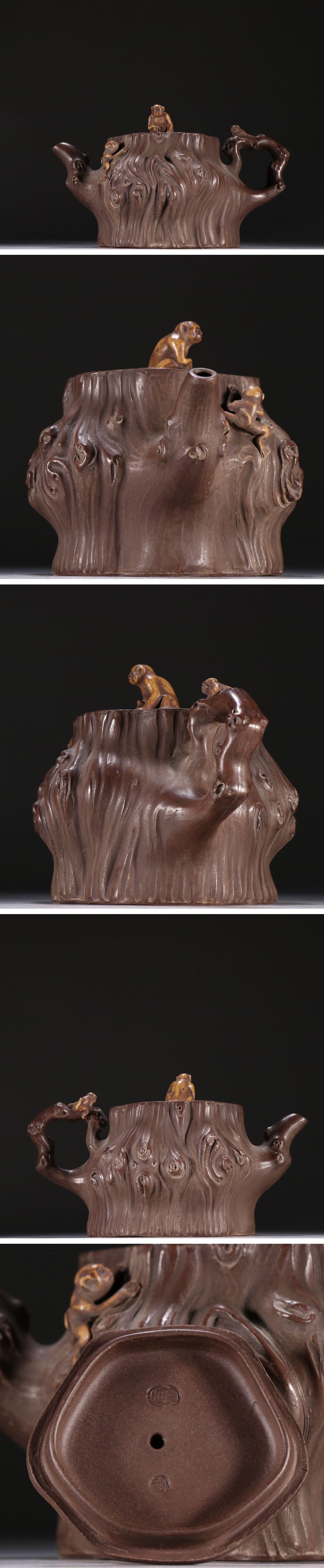 【清】関西某オークション購入 中国伝来 時代物 汪寅仙在銘 木荘紋急須 紫砂朱泥 当時物 時代コレクション8L1-AM