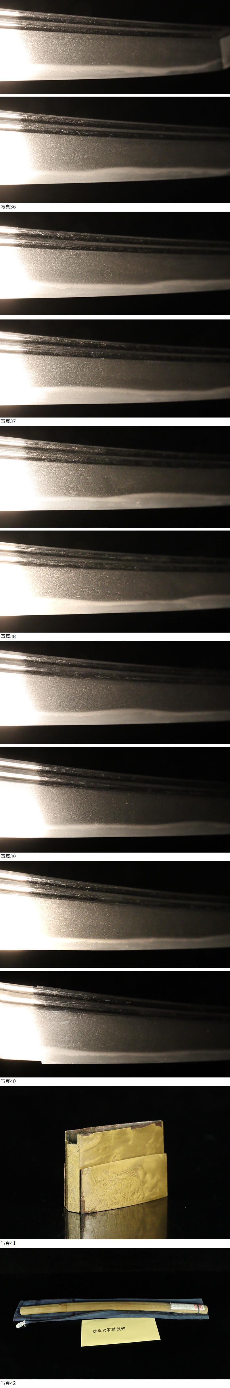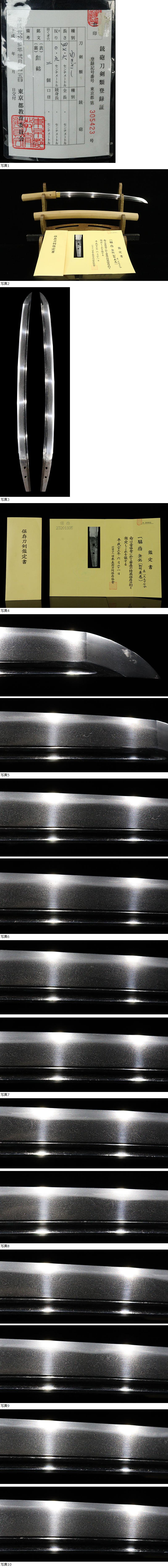 | ■刀剣のサイズ表示について 元幅・・・焼出し付近を測定しております 先幅・・・横手筋付近を測定しております 元重ね・・・焼出し付近の厚みを測定しております 先重ね・・・横手付近の厚みを測定しております (多少の誤差はご容赦ねがいます) ■銃砲類のサイズ表示について 全長・・・銃身先から台木尻までを測定しております 銃身・・・台木を除いて金属部分を測定しております (多少の誤差はご容赦ねがいます) 当社が出品する刀剣類は、入手した時の状態のまま出品しております。 ハバキ、小道具等も当社で調整したり付け替えたりはしておりませんので、合わせではないかというクレームは一切受け付けません。 刀身の疵も隠すことなく載せておりますので写真をよくご覧になってご入札ください。 疵に関して、説明がない等のクレームは一切受け付けません。 写真ではわかりにくい部分は質問欄やお電話でお問い合わせください。 但し、説明欄に表記のない刃切れに関してのみ返品やご相談に応じます。 ※ご落札しご購入されお手元に届いてから20日以内に 登録証に記載されている各都道府県の教育委員会にご連絡し 登録証の所有者変更を必ず行ってください | |||