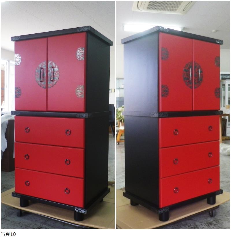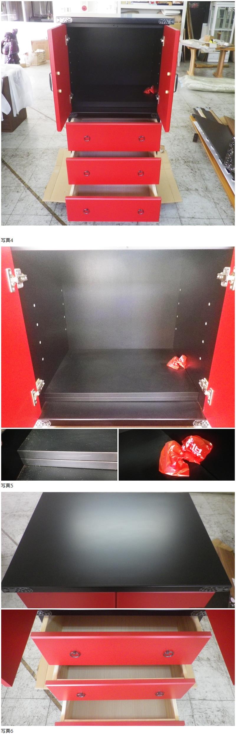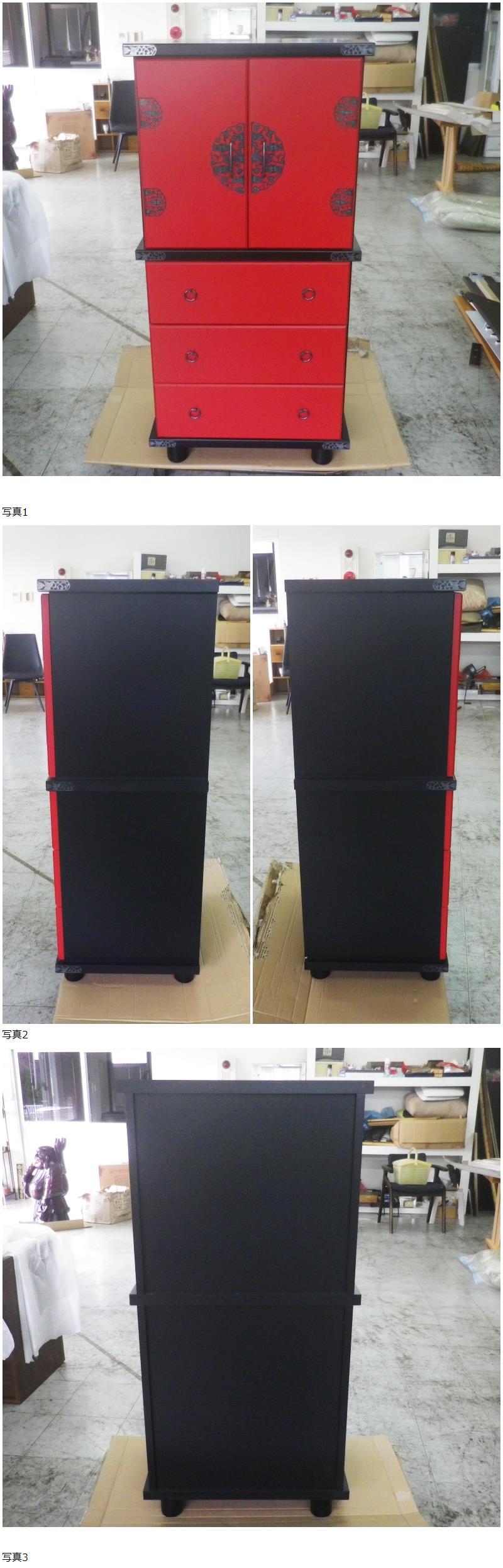 | C1【展示品】和モダン キャビネット 朱塗り 和タンス W60 H122 飾り棚 内部棚板2枚 民芸調 リビングボード 開き戸 漆調 伝統工芸様式 格安 |