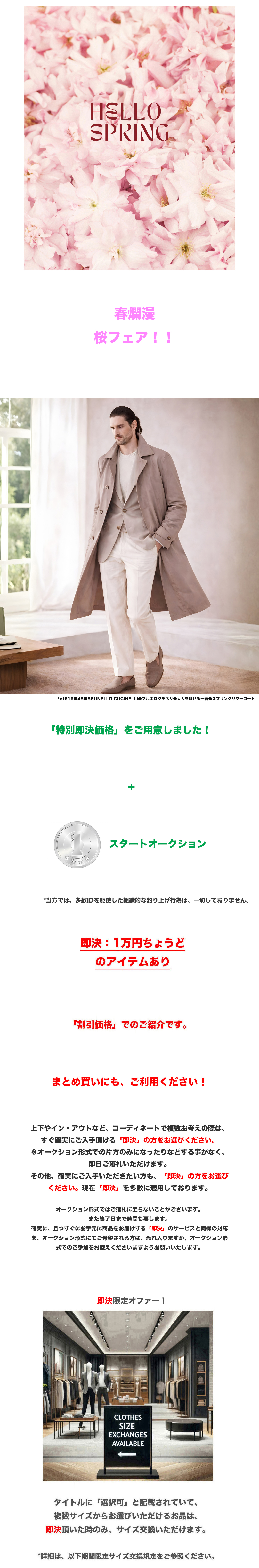 ●イタリアのプレミアムラグジュアリーブランド、ジョルジオアルマーニより、軽やかで上質な風合いが魅力の春夏ジャケットとなります。しなやかで滑らかなタッチのファブリックを採用し、都会的で洗練された佇まいを演出してくれる一着でございます。寒さ残る折には、インナーを暖かくして立ち襟で、またこの先襟を寝かしてはおり感覚にて夏まで楽しめる、長くご利用いただける貴重なジャケットです。 ●アルマーニらしい柔らかなショルダーラインと、身体に自然に沿うリラックス感のあるシルエットが特徴で、構築的でありながらも軽快な着用感を実現しております。シンプルながらも計算されたパターンワークにより、羽織るだけでエレガントな印象を与えてくれる仕上がりです。 ●フロントはシングルブレスト仕様、胸元にはパッチポケット、腰部分にもパッチポケットを配したミニマルなデザインとなっており、カジュアルとラグジュアリーを見事に融合させたスタイルです。裏地は軽量感を重視した仕様で、春夏シーズンでも快適にご着用いただけます。 ●袖口にはボタンが配されており、程よいアクセントとなっております。スペアボタンも付属しており、細部まで配慮された丁寧な作りが感じられます。バックスタイルはすっきりとしたノーベント仕様に近いミニマルな印象で、クリーンなラインを強調しております。 ●軽快な素材感により、Tシャツやニットの上からさらりと羽織るスタイリングはもちろん、シャツと合わせた上品な装いにも対応可能で、幅広いシーンにてご活用いただけそうです。リゾートからタウンユースまで、洗練された大人の着こなしをお楽しみいただけます。 ●表内ポケット、センターベント。袖口本切羽。 ●イタリア製 ●定価:539,000円 ●色:ミッドナイトダークネイビー系 ●素材:リヨセル84% シルク16% ●サイズ:48 50 52の中から、お選びいただけます。*ご落札後、取引連絡よりご希望のサイズをお申し付け下さい(後の変更・交換・キャンセルは一切して頂けません)。ご落札後、24時間以内のご連絡の程お願い申し上げます。*下記詳細サイズもご確認の上、よろしくお願いいたします。 ●詳細サイズ(cm)置いた状態で: 48 *日本サイズ概ねM-Lサイズ辺りとなりますが、下記詳細サイズもご確認の上、よろしくお願いいたします。 肩幅:47.5(右肩端~左肩端の直線距離) 身幅:56(右脇下~左脇下の直線距離) 袖丈:63.5(肩の縫い目~袖先) 着丈:71(襟の付け根~裾まで。襟の幅を含んでいません) 50 *日本サイズ概ねLサイズ辺りとなりますが、下記詳細サイズもご確認の上、よろしくお願いいたします。 肩幅:49.5(右肩端~左肩端の直線距離) 身幅:58(右脇下~左脇下の直線距離) 袖丈:64.5(肩の縫い目~袖先) 着丈:72(襟の付け根~裾まで。襟の幅を含んでいません) 52 *日本サイズ概ねXLサイズ辺りとなりますが、下記詳細サイズもご確認の上、よろしくお願いいたします。 肩幅:51(右肩端~左肩端の直線距離) 身幅:60(右脇下~左脇下の直線距離) 袖丈:65.5(肩の縫い目~袖先) 着丈:73(襟の付け根~裾まで。襟の幅を含んでいません) 詳細サイズご参考 ※大よその採寸となります。 ※ご落札後取引ナビよりサイズご相談頂くことが無いよう、サイズは事前のお決め頂いた上よろしくお願い致します。 ※ご落札後、ご希望サイズを取引ナビより、必ずお知らせ下さいませ。ご落札後24時間以内を経過後、ご希望サイズをいただけない場合は、取引のキャンセルもしくは、こちらにて任意のサイズにて選択させていただくことがございます(その場合も後のサイズ変更・交換・キャンセルは一切して頂けません)。 ※お品物はタイトルにございますもののみとなり、着合わせのお洋服や小物などがございましても、それらは含まれません。 ※素材の特性上、多少のことはご容赦くださいませ。 ※ご質問は、必ずご入札前にお願いいたします。(ご入札後、ご落札後の取引ナビからのご質問はお避け下さい) ☆☆☆ご連絡・お支払い(かんたん決済)☆☆☆ ご落札後24時間以内に、取引ナビからご連絡(お名前・ご住所全て。*サイズ選択いただけるオークションはサイズのご連絡も含め)・かんたん決済可能な方。 *銀行振込の場合は翌営業日、コンビニ決済はご落札後2日目の午前中まで、お支払いをお済ませ下さいませ。 電話応対は、一切致しておりません。取引ナビをご利用下さい。 ☆☆☆受け取り連絡☆☆☆ 製品到着後24時間以内。*出来る限り、到着日当日に受け取り連絡頂きましたら幸いです。 *配達日指定ご希望の際は、ご落札後、最長4日以内に「受取連絡」ができるようお願いします。(北海道・沖縄・離島の方は5日以内) *特別に記載をしました際には、そちらを優先させていただきます。 ☆☆☆同日に2点以上のご落札の場合☆☆☆ 「まとめて取引」を、最初にご選択ください。 *「まとめて取引」を、お届け情報などご入力前にご選択ください。同梱発送となり、一品分の送料のみとなります。 *「まとめて取引」をご選択