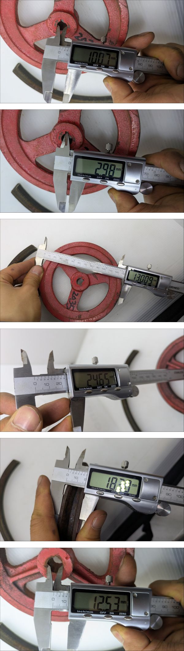 | ●●最後まで読んで下さい●●納得した上でご入札してください●● ●機械専門アカウントは**こ ち ら**です。 ●当方の別出品物を同時購入しても送料分安くなりません。 ●発送料金は入札ボタン付近にあり、沖縄、北海道、離島以外一律です。 ●塩尻市から発送します。 ●離島発送はできない場所がございますので、事前にお問い合わせください。 ●発送日は月、水、金、日です。急ぎの場合はご連絡をお願いします。 ------------------------------------------------------------------------------------------- ●1連のプーリーです。 ●Aベルトです。 ●軸 径:約Φ10/12.5mm ●鍵 幅:約3mm ●プーリー外径:約Φ130mm ●全体 厚さ:約24mm ●ベルト部 厚さ:約18mm ●書いたインクは消さずに発送します。 ●素人寸法のため、測定誤差があります。 ●中古品のため、サビや汚れがあります。 ●錆は各自で取り除いてください。 ●現状写真の通りのまま送ります。 ------------------------------------------------------------------------------------------- ●下の方にも画像がございます。※たまに写真の枚数が不足していて画像がない場合があります。 ●落札後、ご指定配達の時間帯がある場合はあらかじめご連絡してください。 | |||