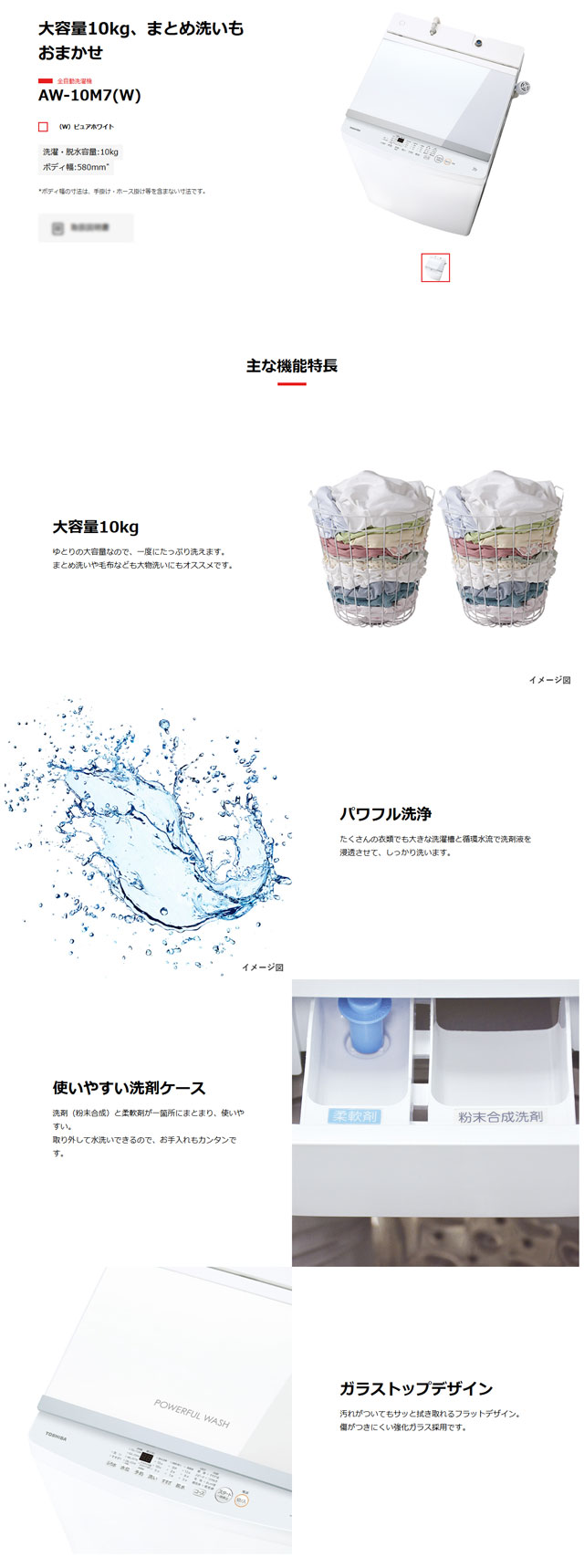| メーカー・型式 | 東芝 / AW-10M7(W) | |