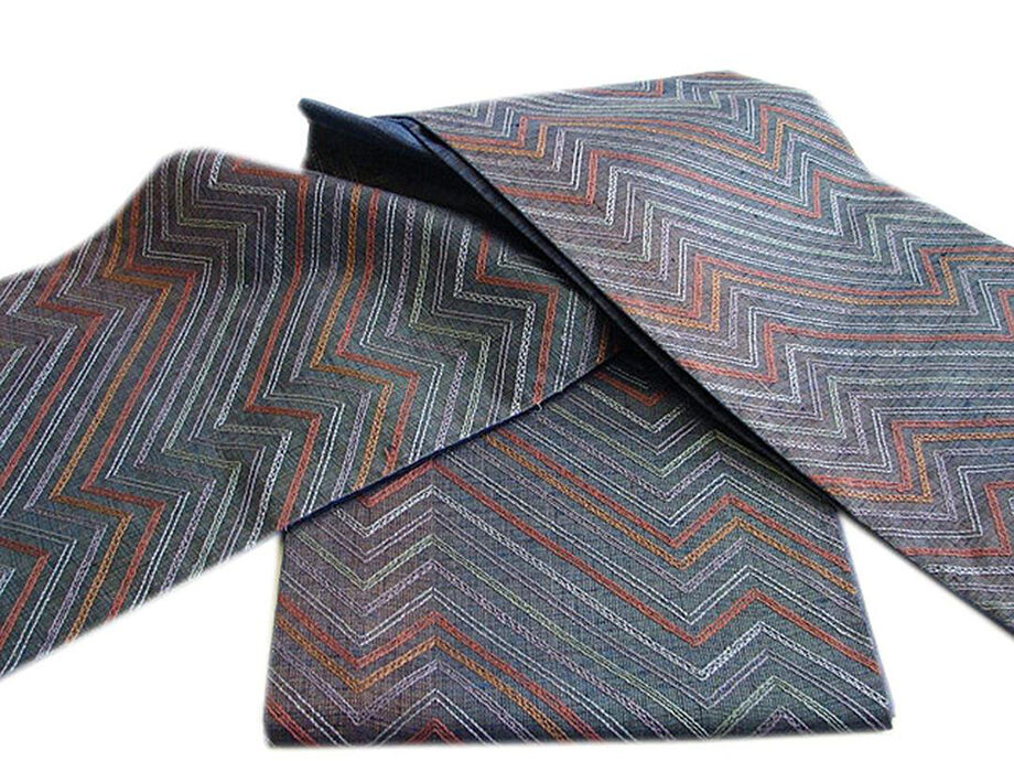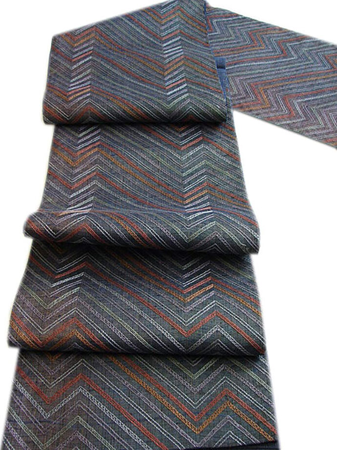 | 商品説明 | とてもしなやかで扱い易く結び易いふっくらとした真綿紬地の袋帯。 鼠色地に青、金茶、茶、青藤色等の織柄。 六通柄。 ロングサイズ。 |