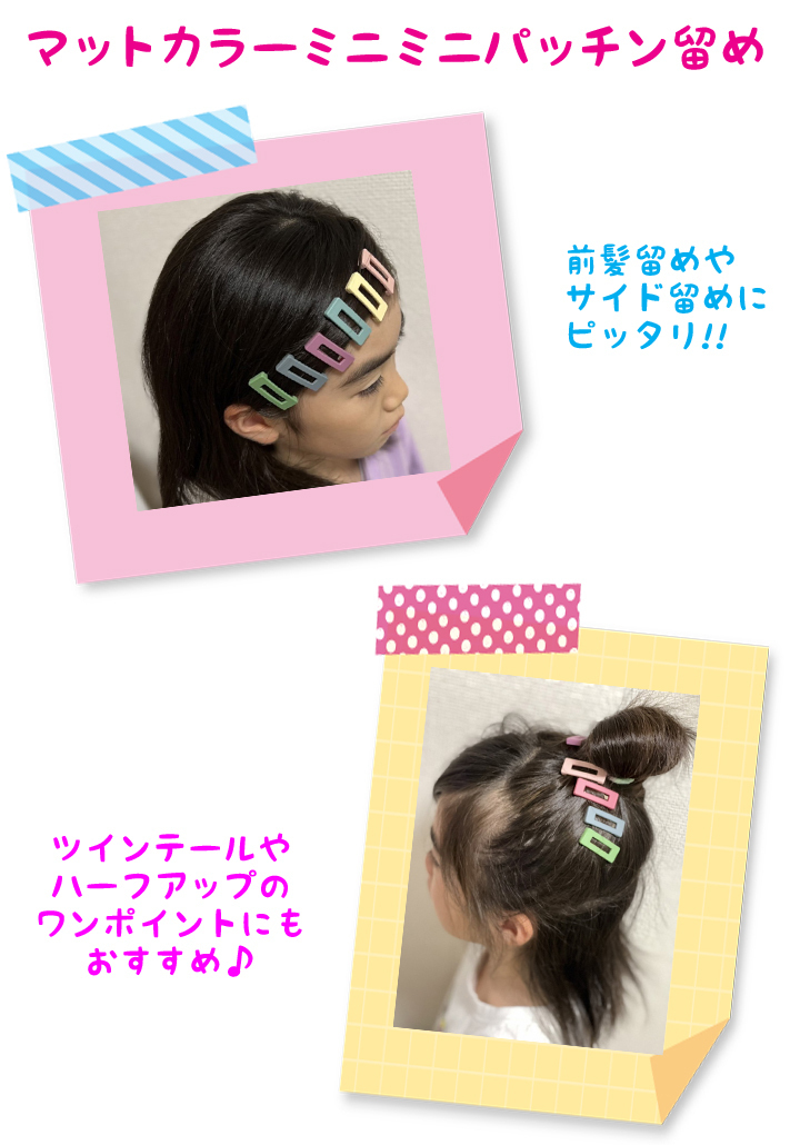 | 商品説明 | いくつあっても嬉しいパッチンタイプヘアピン。 前髪留めやサイド留めにピッタリなシンプルデザインで、毎日のスタイルをもっとオシャレに♪ おだんご等でのワンポイント使いや、カラフルに重ね付けもおすすすめです^-^ |