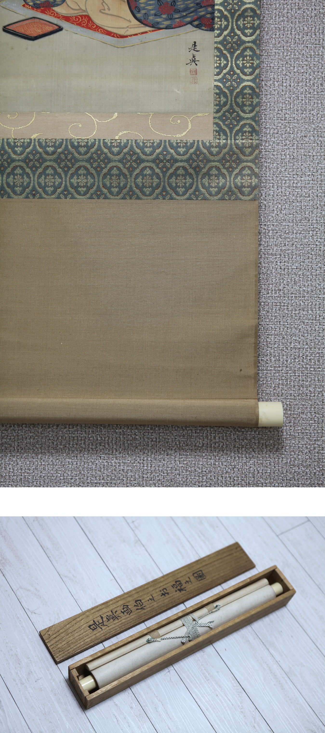 | 【真作】【風車】 柴田是真 「お福之図」◎肉筆絹本◎江戸後期の画家 漆芸家 東京の人 帝室技芸員 | ||||||||||||||||||||
