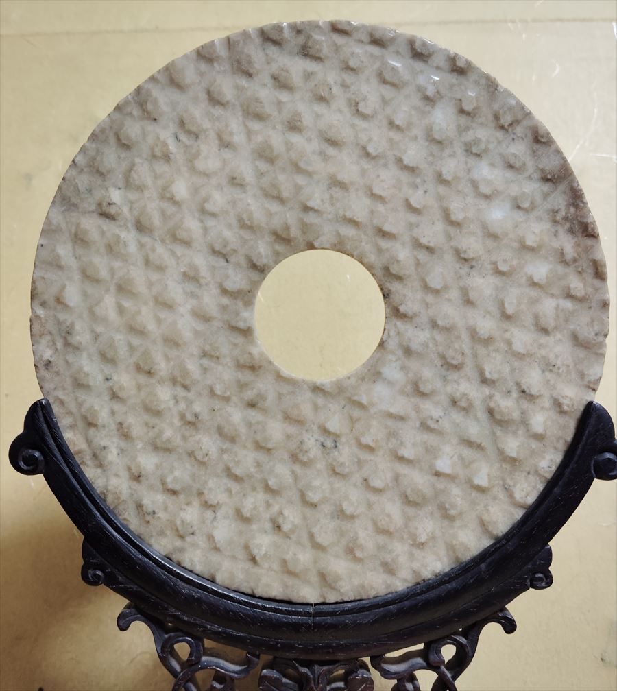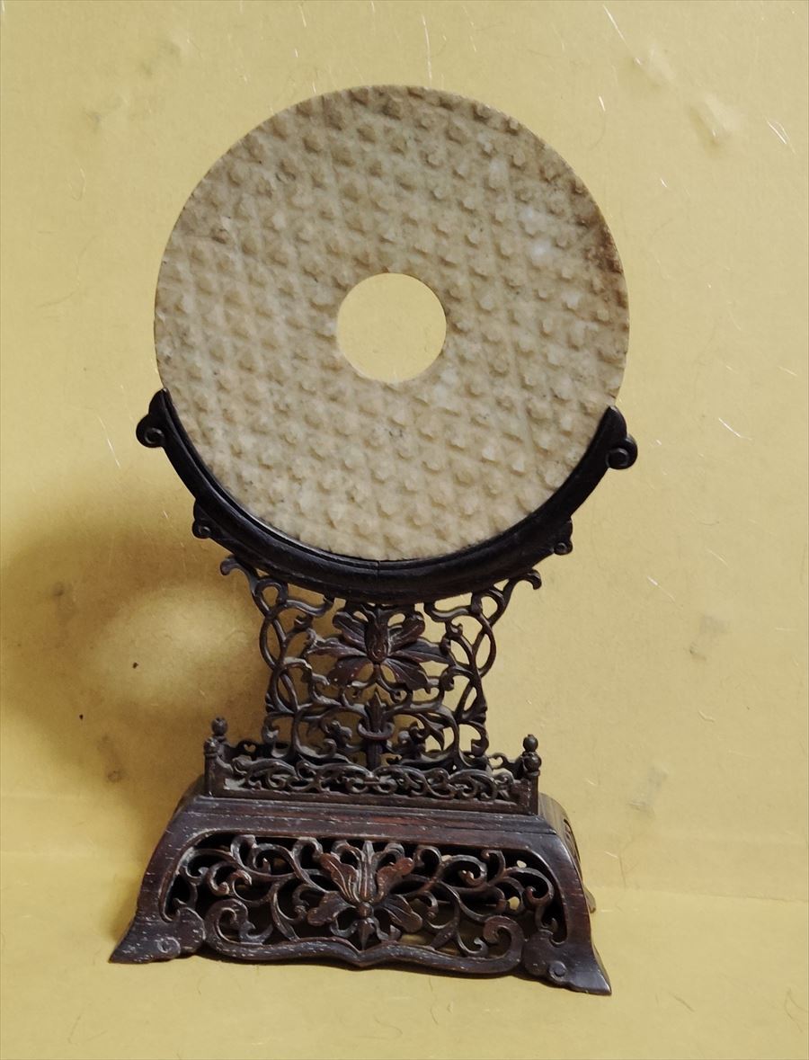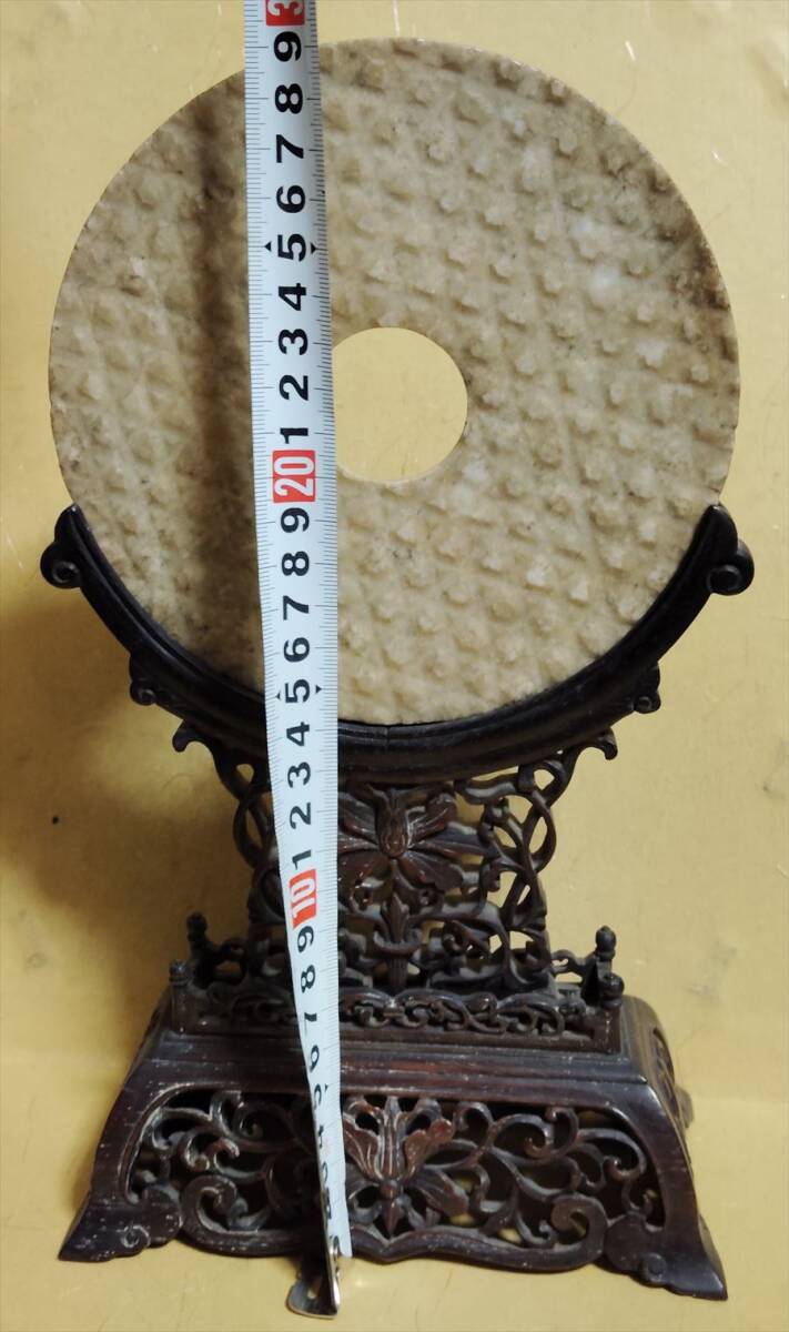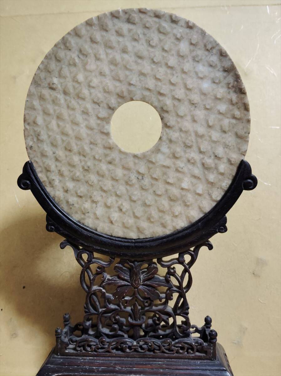 中国 戦国 漢代 玉 大 玉壁 蒲紋 唐木 紫檀 架子 王朝 宮中 中国骨董品 古玩 石彫り 彫刻 和田玉
